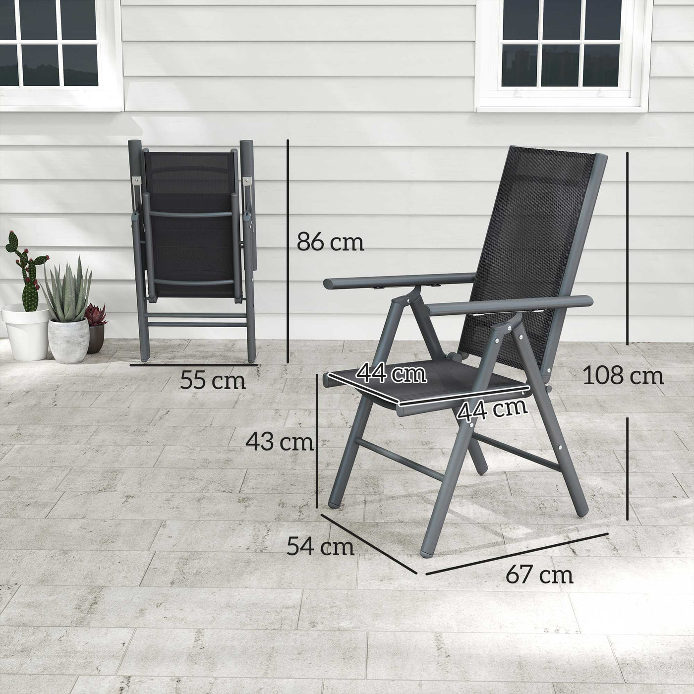 This set of two Outsunny garden chairs are fitted with mesh fabric seats, with high backs: keep comfortable and supported. The aluminium frames are strong and supportive; resistant to rust and corrosion - suitable for outdoor use. Foldable - easy to carry and store.