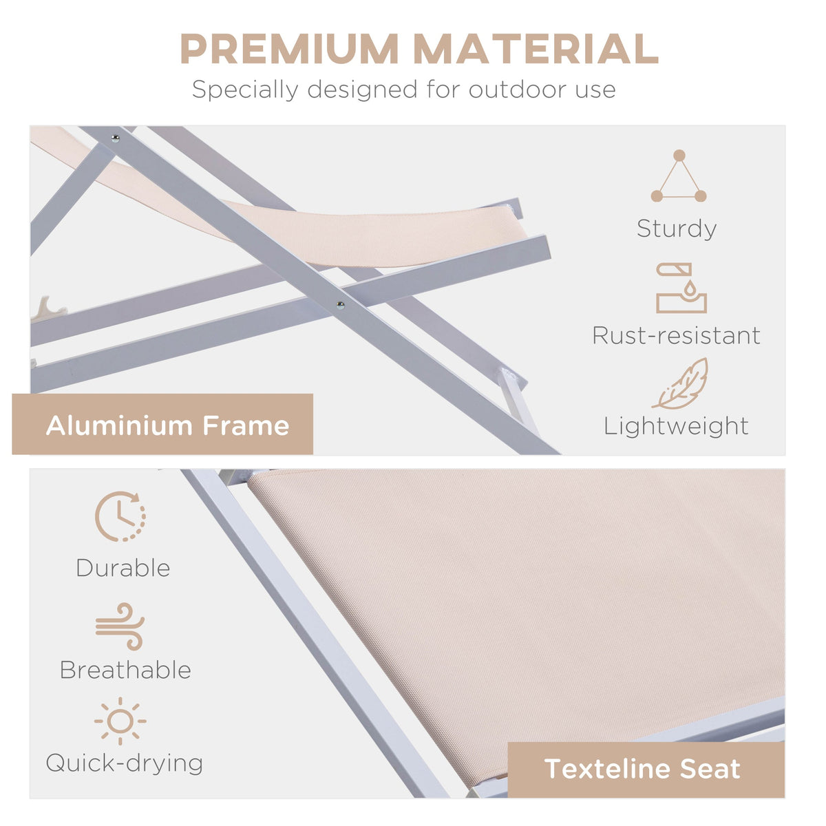 Outsunny Set of 2 Folding Garden Beach Aluminium Frame Deck Chairs Deckchairs Seaside Folding Garden Patio Lounger, Beige - Beige
