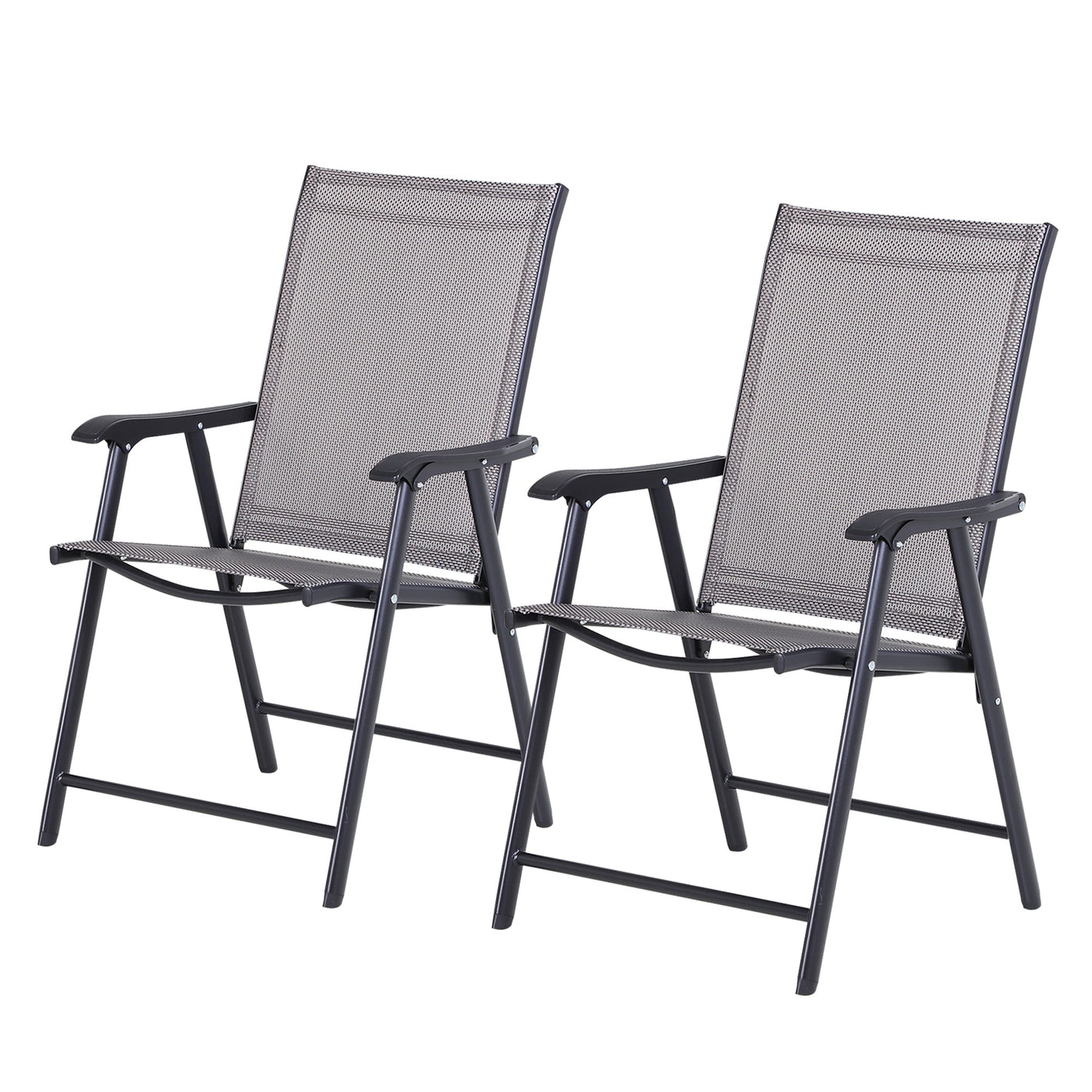 Outsunny Set of 2 Folding Garden Chairs, Metal Frame Garden Chairs Outdoor Patio Park Dining Seat with Breathable Mesh Seat, Grey - Grey