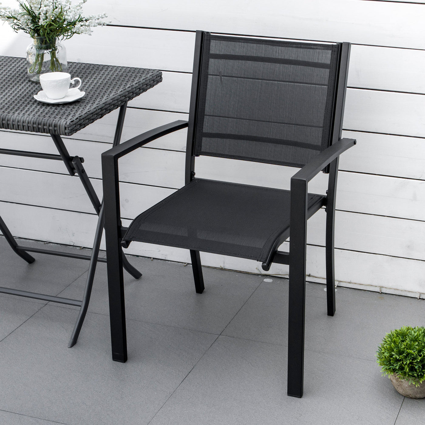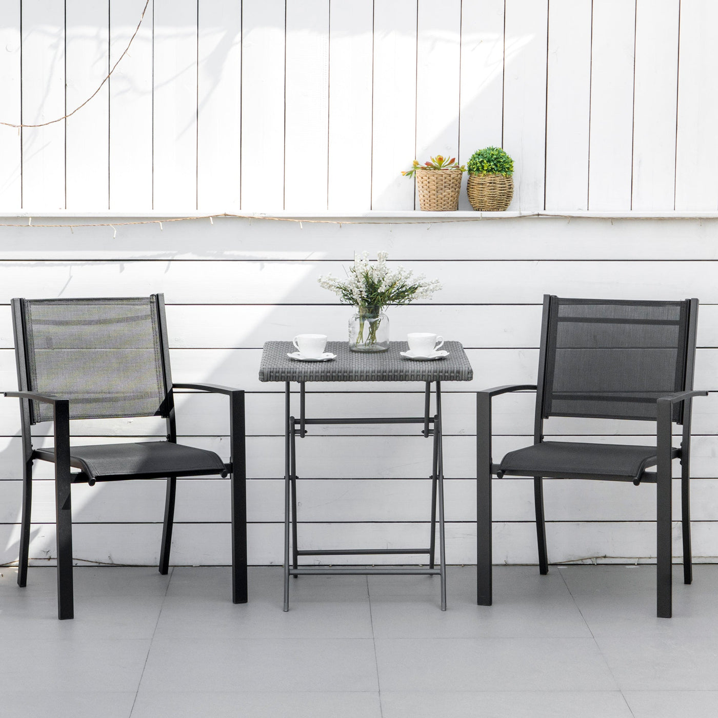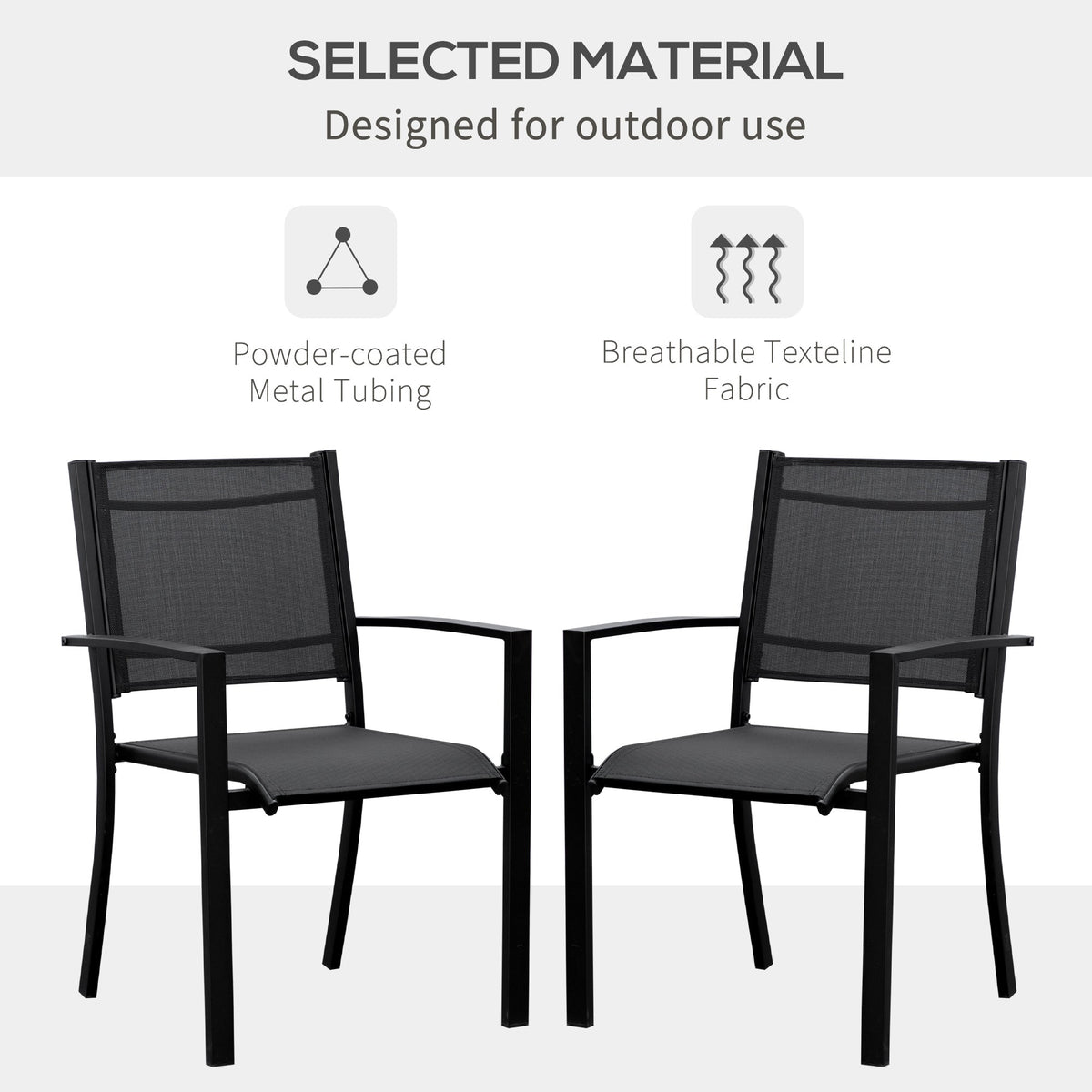Outsunny Set of 2 Outdoor Garden Chairs with Steel Frame Texteline Seats for Dining Patio Balcony Black - Black