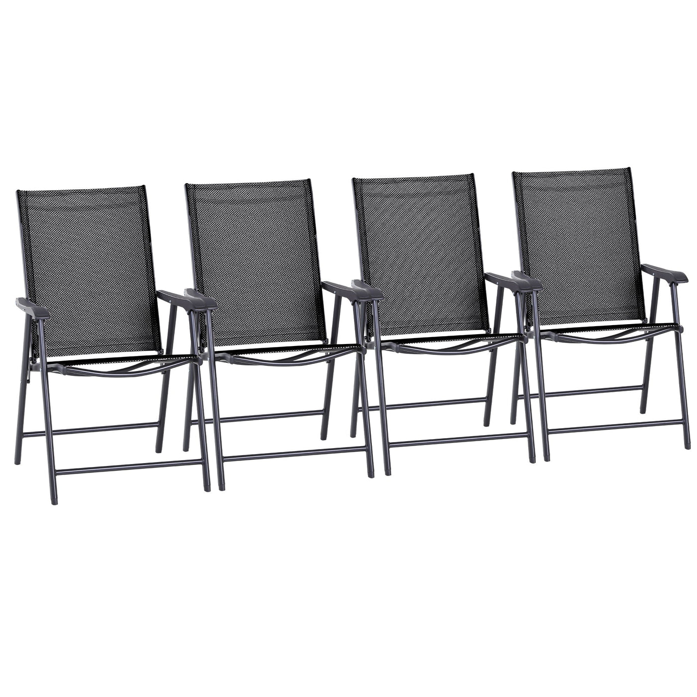 Outsunny Set of 4 Folding Garden Chairs, Metal Frame Garden Chairs Outdoor Patio Park Dining Seat with Breathable Mesh Seat, Black - Black