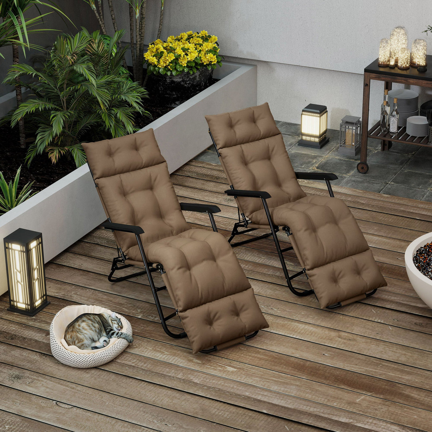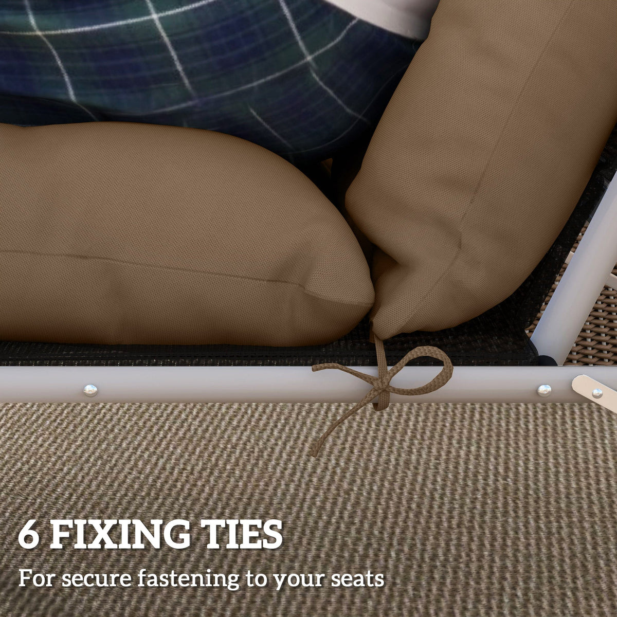 Upgrade and relax on your outdoor recliner, with this Outsunny sun lounger cushion set. Both cushions are filled with high-resilience PP foam - long-lasting comfort, even during extended sitting. The polyester fabric covers are durable, so they are made to last. Both cushions come with six tie fastenings to secure in place.