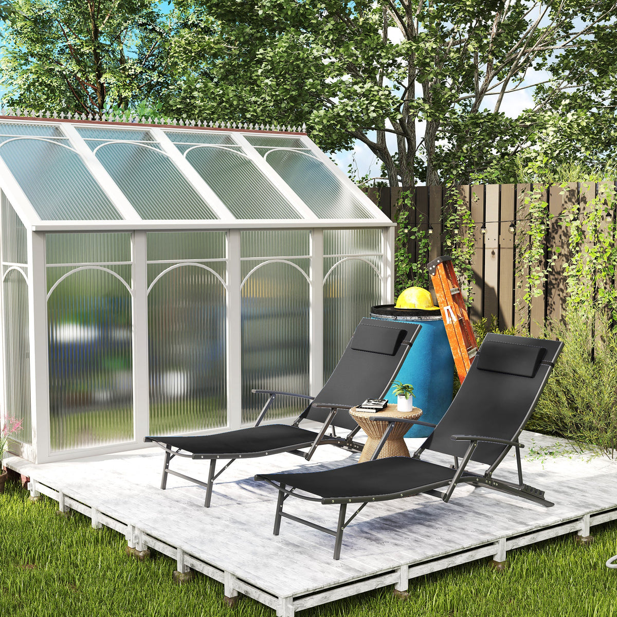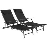 Soak up the sunshine, how you want with these two Outsunny sun loungers. They have a four-level adjustable back, so you lie back to a position of your choice. The quick-dry texteline mesh seats hold you comfortably, with top pillows to prop the head and neck. With powder coated steel frames for a strong core, they can be folded to carry around and store easily.
