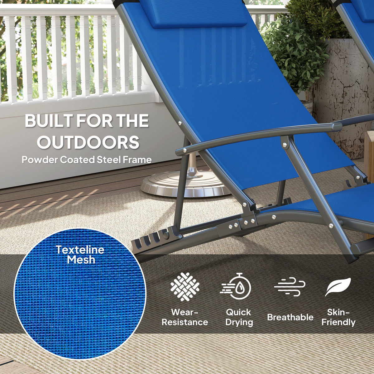 Outsunny Set of Two Adjustable Back Sun Loungers - Blue - Blue