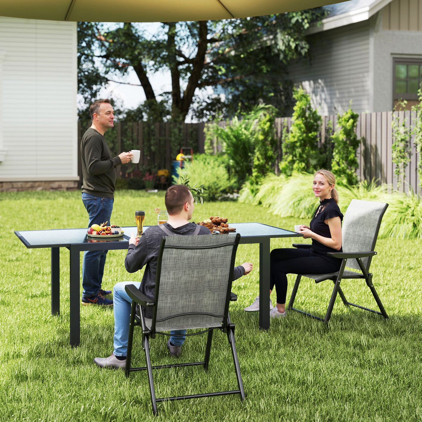 Outsunny Set of Two Folding Outdoor Chairs - Black/Grey - Black, Grey