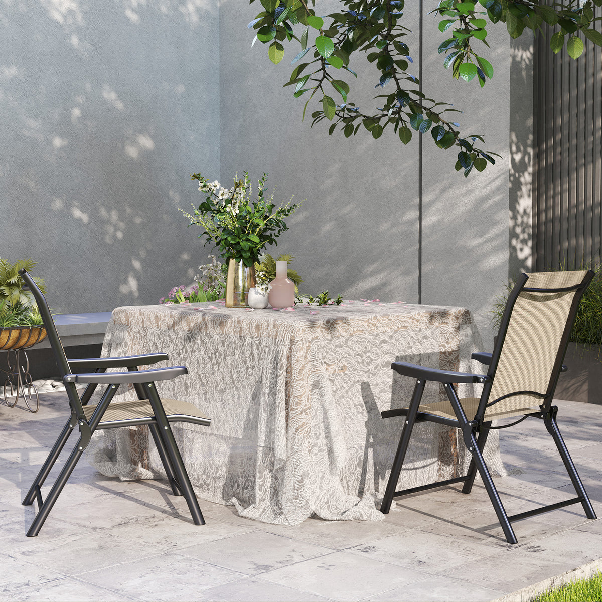 An essential set for garden and outdoor spaces - these two Outsunny outdoor chairs. With 63 cm high backs and armrests for support, the breathable mesh fabric seats hold you comfortably. Using powder coated steel frames for a strong core, these chairs are foldable - carry around and store whenever you want