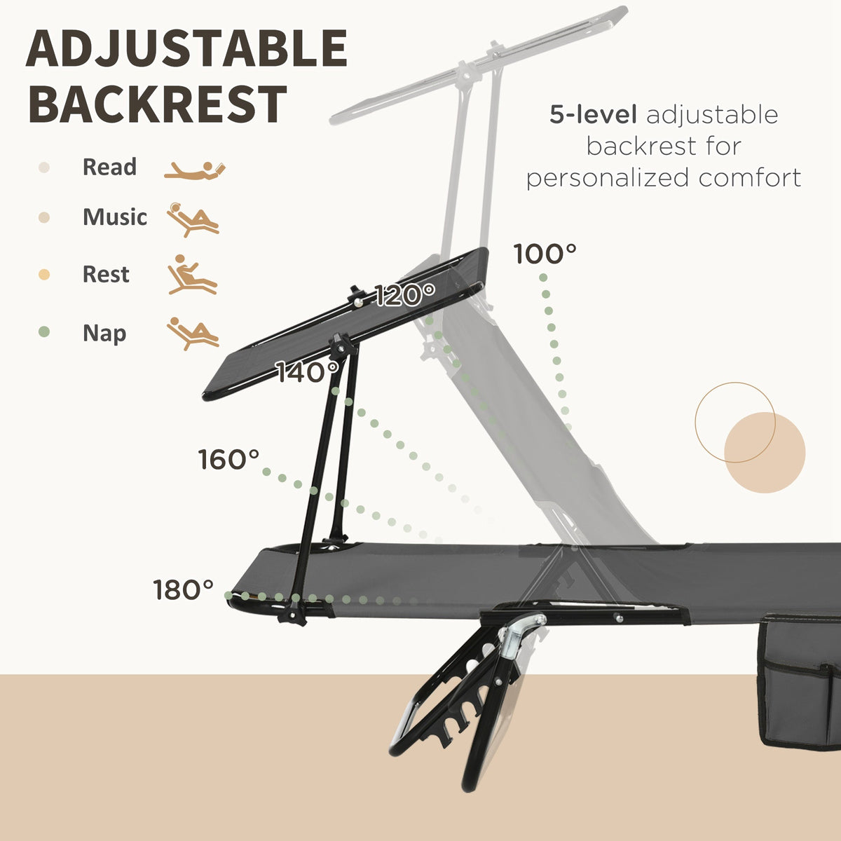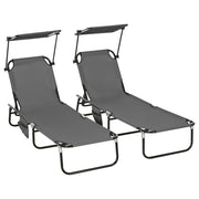 Outsunny Set of Two Folding Sun Loungers, with Adjustable Backs and Sun Canopies - Grey - Dark Grey