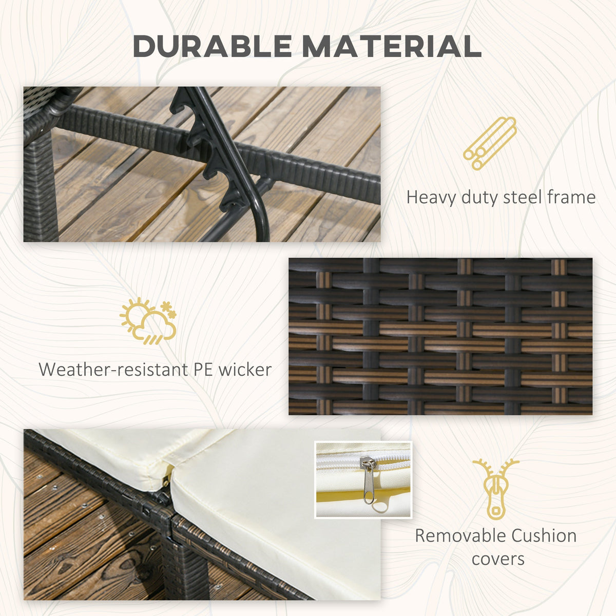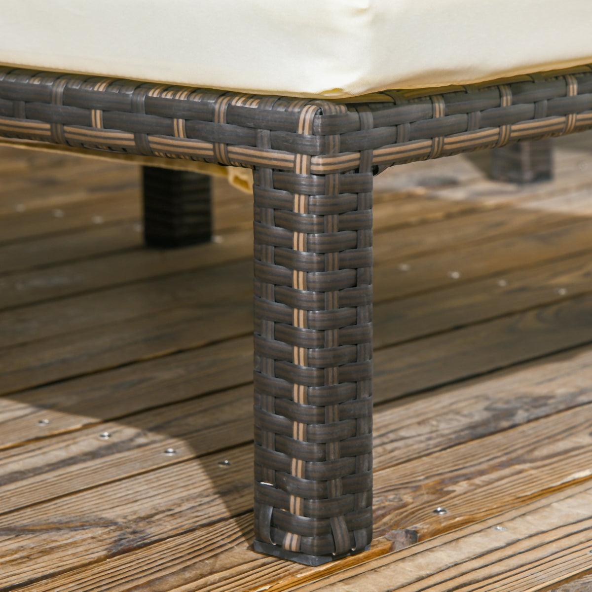 Lounge in luxury, whether in the garden or patio outdoors - thanks to this longline sun seat from Outsunny. Formed of a powder coated metal frame, with PE wicker wrapped around: weather-resistant, durable and beautiful. The back sets to five different positions so you can chose an angle most comfortable for you. The comfortable longline seat comes with a removable cushion; the polyester cover can be washed to keep it clean. Style and comfort, blended into together.