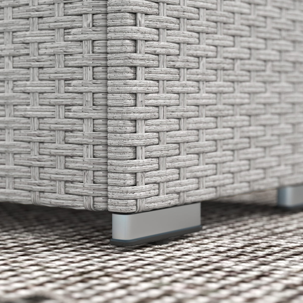 Relaxing evening times need never be cold again - do it in one with this Outsunny rattan set, with fire pit table. The two corner loveseats, standard loveseat, three footstools and matching fire pit table mean there's room for your favourites to gather round, with the table giving you somewhere to eat and drink from. In the middle of the table, there's a fire pit: provides up to 50,000 BTU power - plenty of heat for the colder climes. There's a wind guard for the fire, so you can keep peace of mind, at all times.