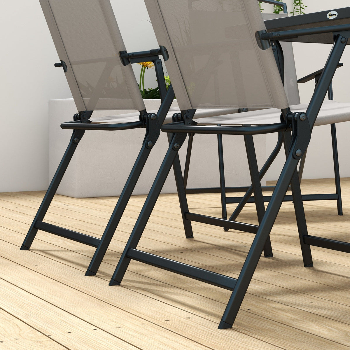 Outsunny Seven-Piece Garden Dining Set, with Glass-Top Table and Folding Chairs - Grey - Grey