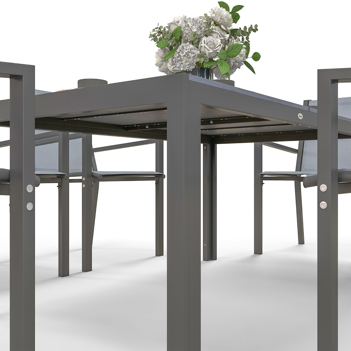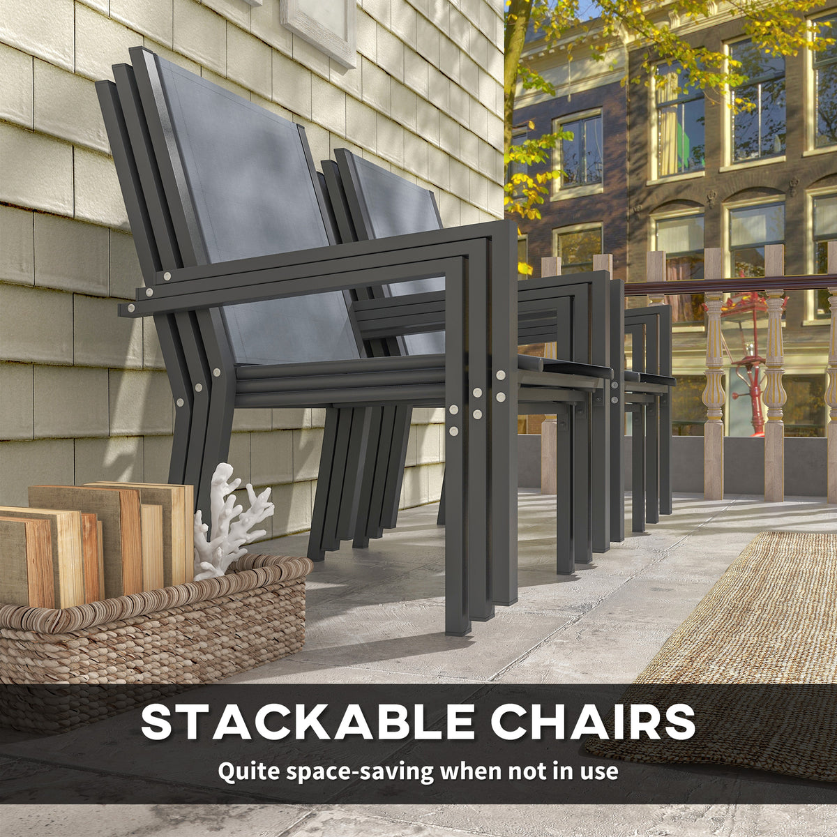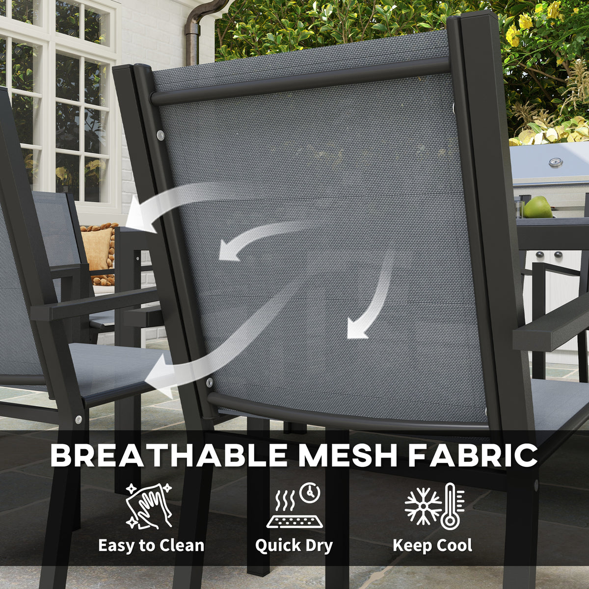 Whether it's for breakfast, brunch or dinner, this Outsunny seven-piece dining set brings everyone together. Six chairs to sit with your favourite people, with the large table giving plenty of dining room. Made from plastic wood, the tabletop is strong and sturdy so it's ideal for outdoor use: the faded rustic design is a perfect addition to outdoors spaces.