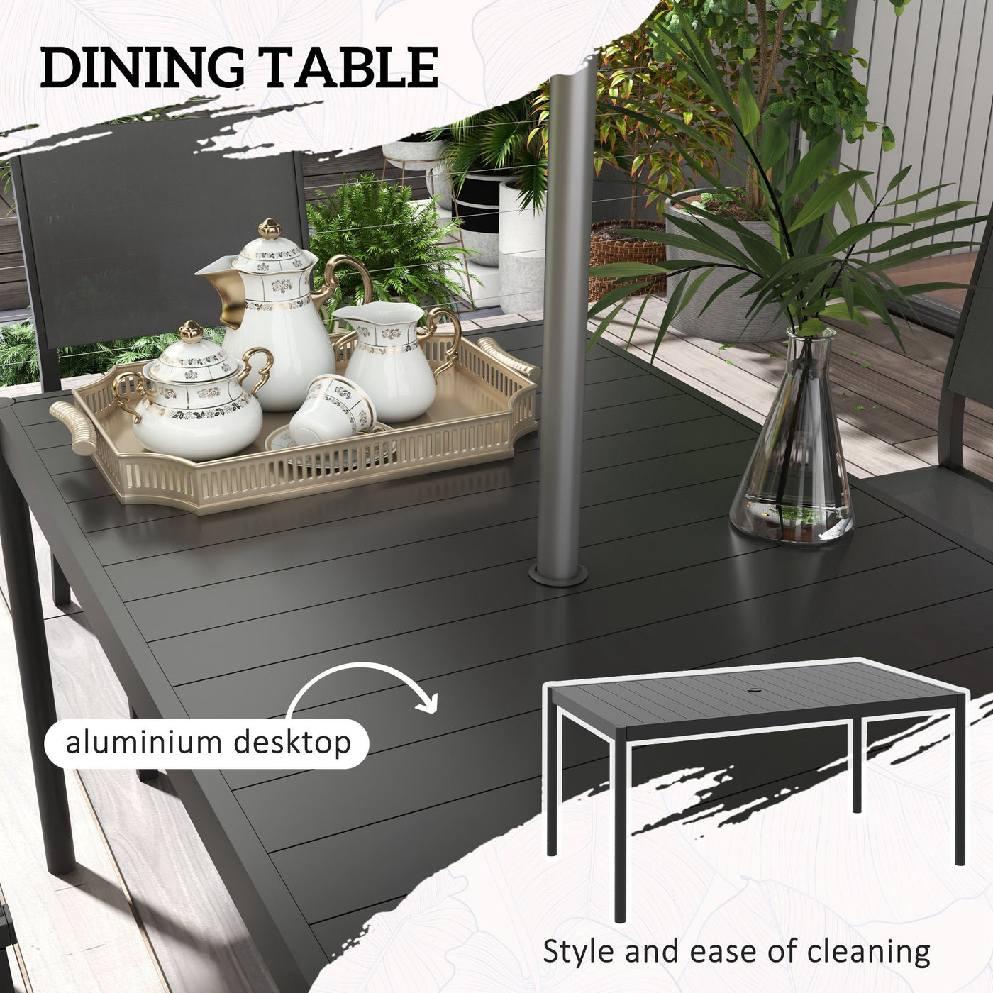 This Outsunny patio table and chairs set is made to socialise with friends. The frames of the chairs and matching table are made from powder coated steel and aluminium: strong and supportive. The mesh panels on the chair are breathable - ventilation on hot days. A set for this season and beyond.