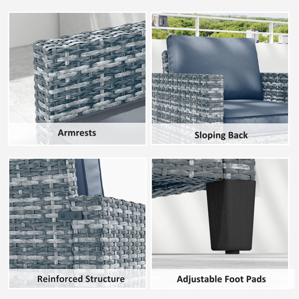 Outsunny Single Rattan Armchair, with Cushions - Light Grey
