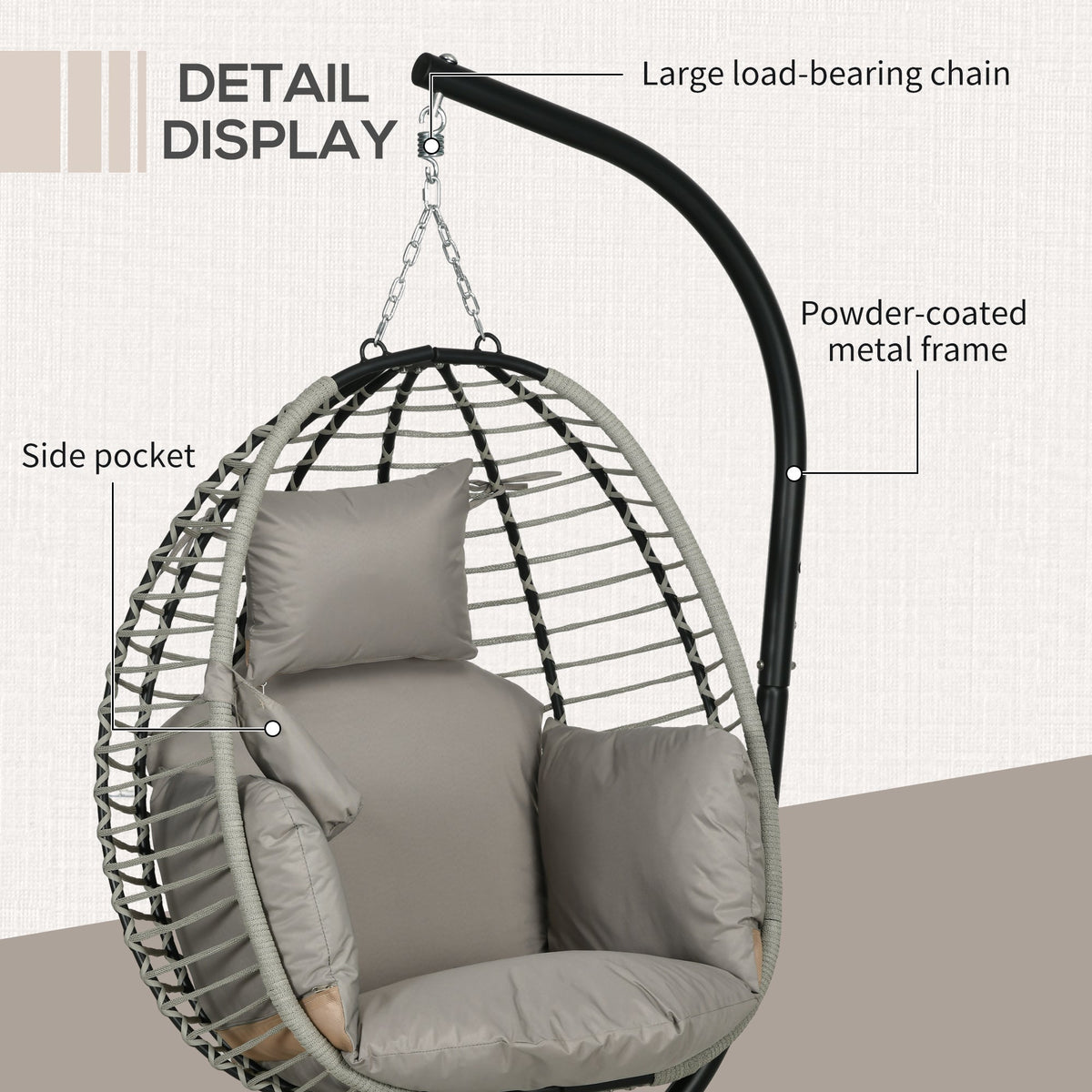 Make the most of lazy days with this Outsunny hanging egg chair. The curved back, spacious seat and thick padded seat cushion means plenty of comfort. The hanging stand is made from powder coated steel: a strong and supportive core. The foldable seat means it can be stored basket, space-saving and convenient. Use indoors or outdoors, as you choose.