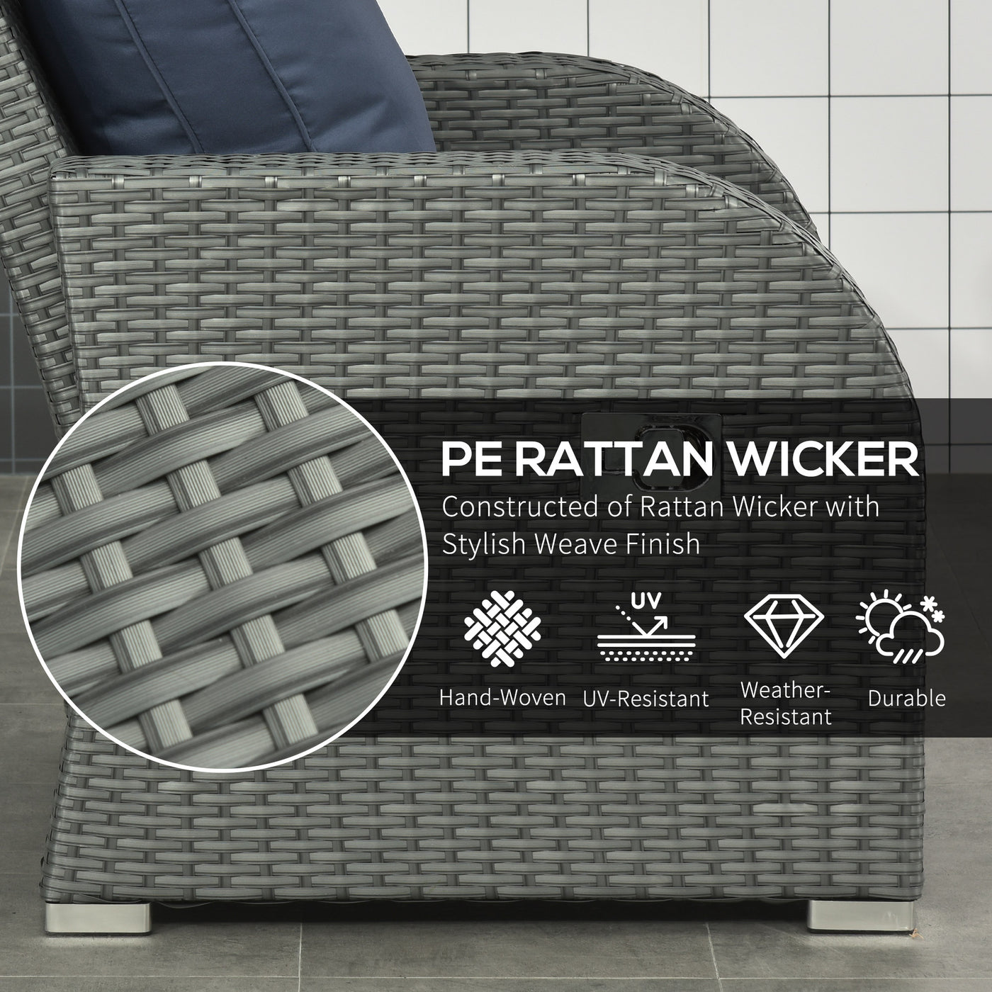 Outsunny six-piece outdoor wicker dining set is designed for the garden enthusiast. Crafted with a robust powder-coated steel frame and elegantly wrapped in weather-resistant plastic wicker, this set promises durability and style. Imagine a serene afternoon where you recline in the adjustable armchairs, enveloped in plush cushions, as your garden transforms into a haven of comfort. It can be effortlessly rearranged to accommodate gatherings.