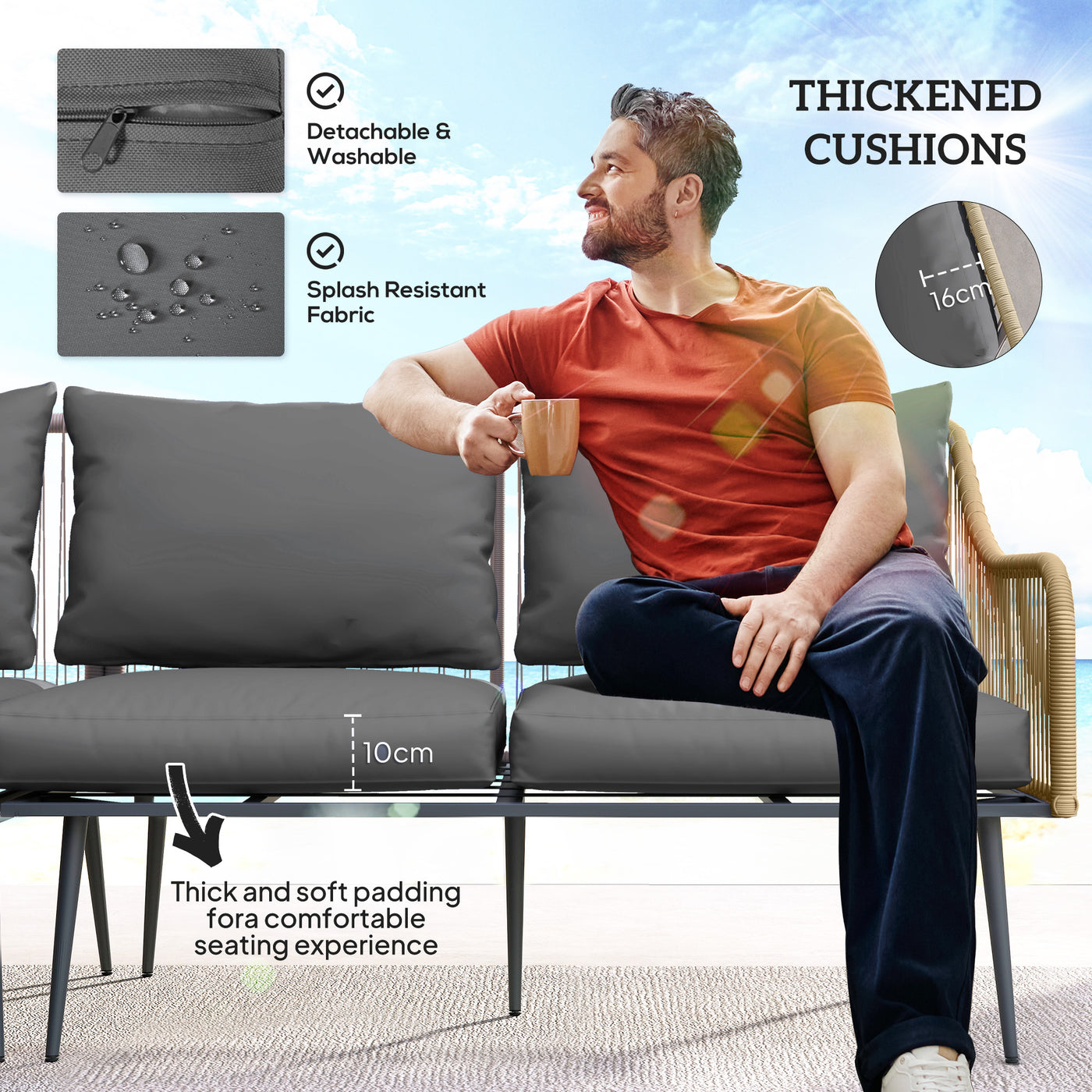 - Thickened padded seat and back cushions for comfort, with removable and washable covers