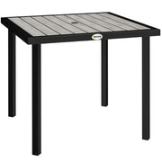 Beautiful outdoor dining starts with this Outsunny garden table, suitable for every patio or garden space. Place your parasol umbrella in the 54mm middle parasol hole and keep safely shaded in the sun. With a powder coated metal frame for a strong core, it's fitted with a robust plastic tabletop, which comes in a beautiful wood-effect design.