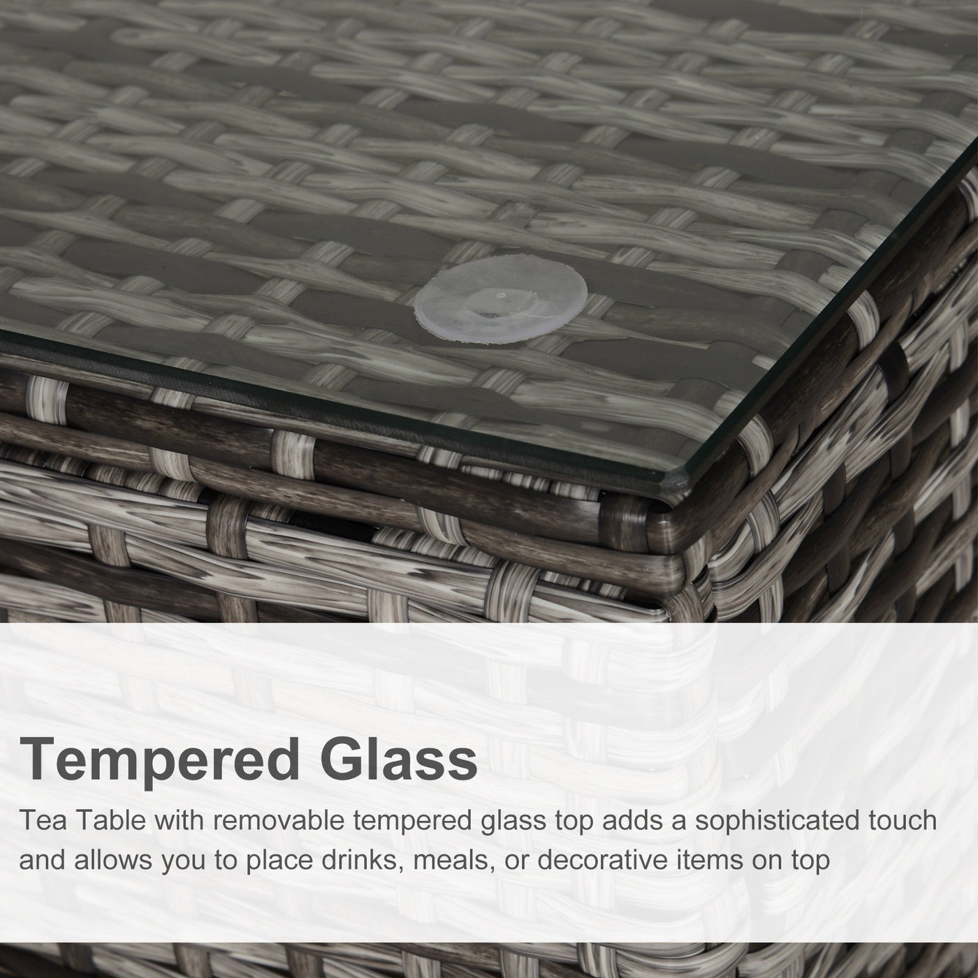 Ensure you have the perfect spot to keep everything you need close to your outdoors, thanks to this side table from Outsunny. Square in shape, it has been made with a powder coated and galvanised steel frame, keeping the structure in check and stable, with PE wicker rattan wrapped on the outside, giving it a versatile look which copes with mild weather damage to ensure it will last in your furniture for many seasons. A 5mm thick tempered glass sits on the top, giving it a sleek look and an even surface which can be cleaned easily. Finished with four legs for balance.