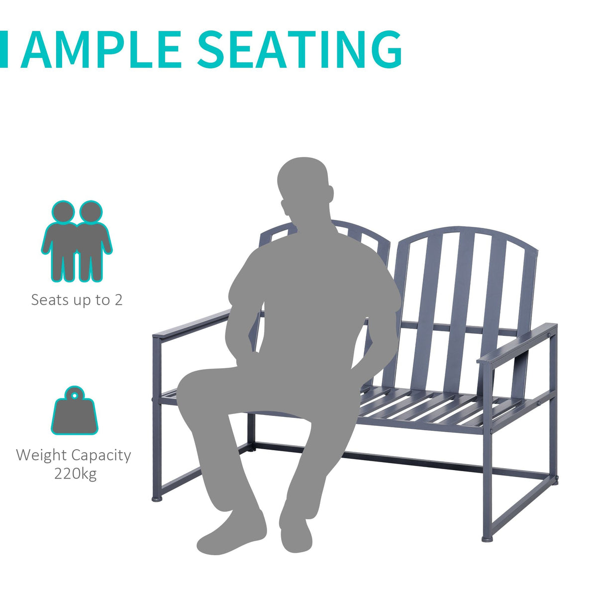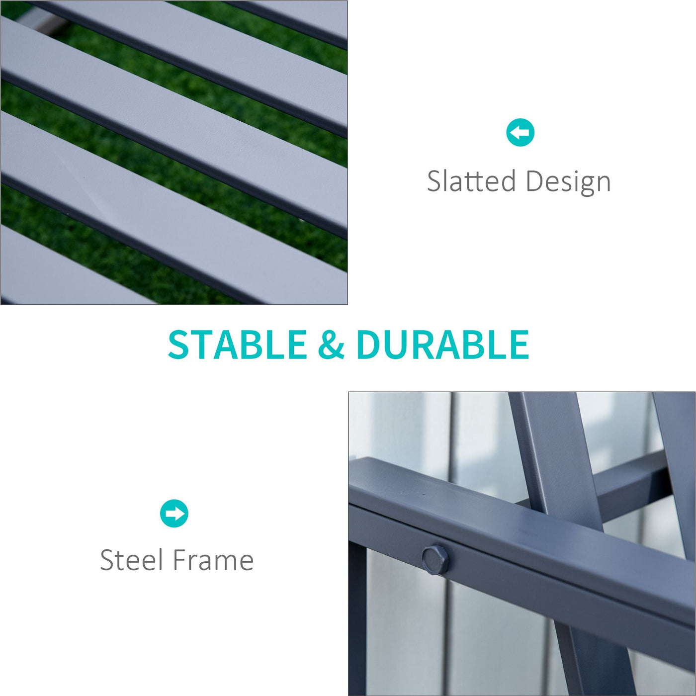Outsunny Steel Patio Garden Bench Loveseats for Outdoors Park Yard Slatted Design Grey - Grey