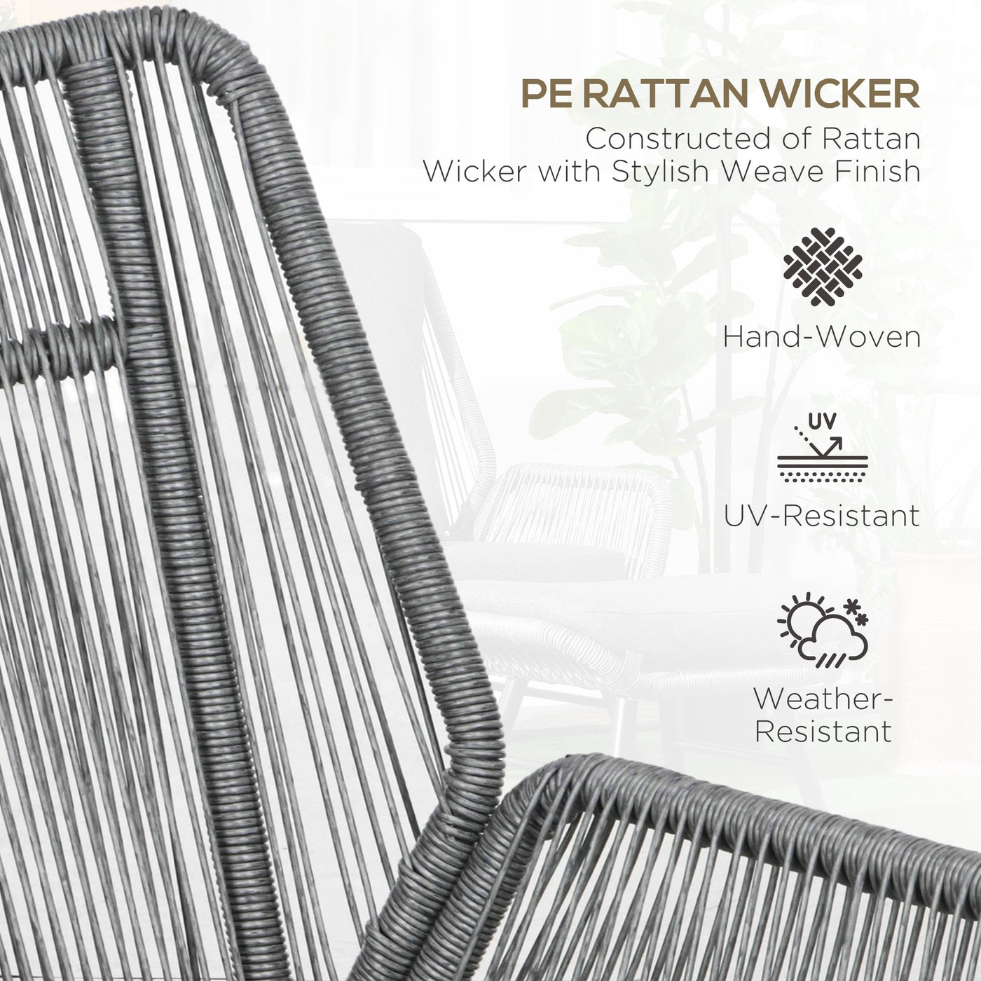 Outsunny String Rattan Armchair and Footstool Set, with Cushions - Grey - Light Grey