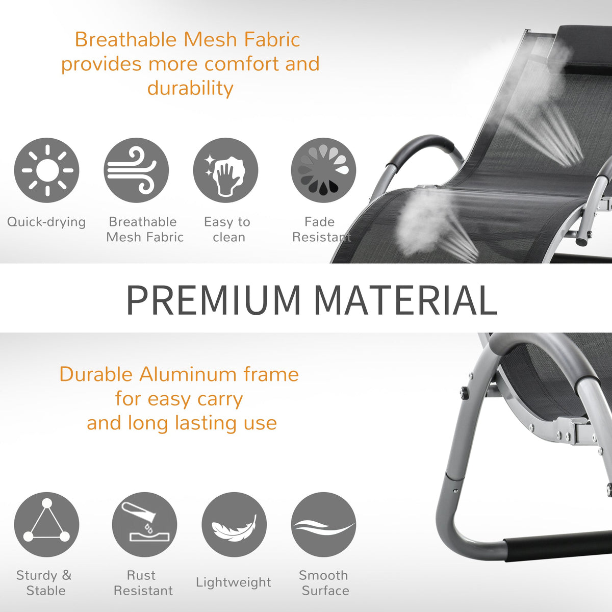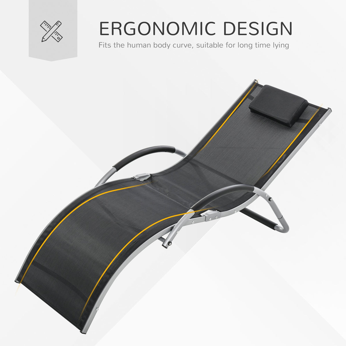 Outdoor lounging just got a lot better. Pair your days outside with this Outsunny lounger for complete relaxation. The frame is made from aluminium to be suitable for everyday use, is crafted into a smooth curved shape that better adapts to your body shape. It's fitted with a breathable mesh fabric seat that holds your body in place, with a removable pillow for extra comfort and support to the head and neck. Finished with foam pads on the armrests and bottom frame part for extra protection.