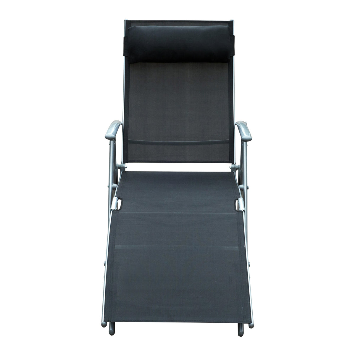 Outsunny Sun Lounger Steel Frame Outdoor Folding Chaise Texteline Lounge Chair Recliner with Headrest & 7 Levels Adjustable Backrest, Black - Black