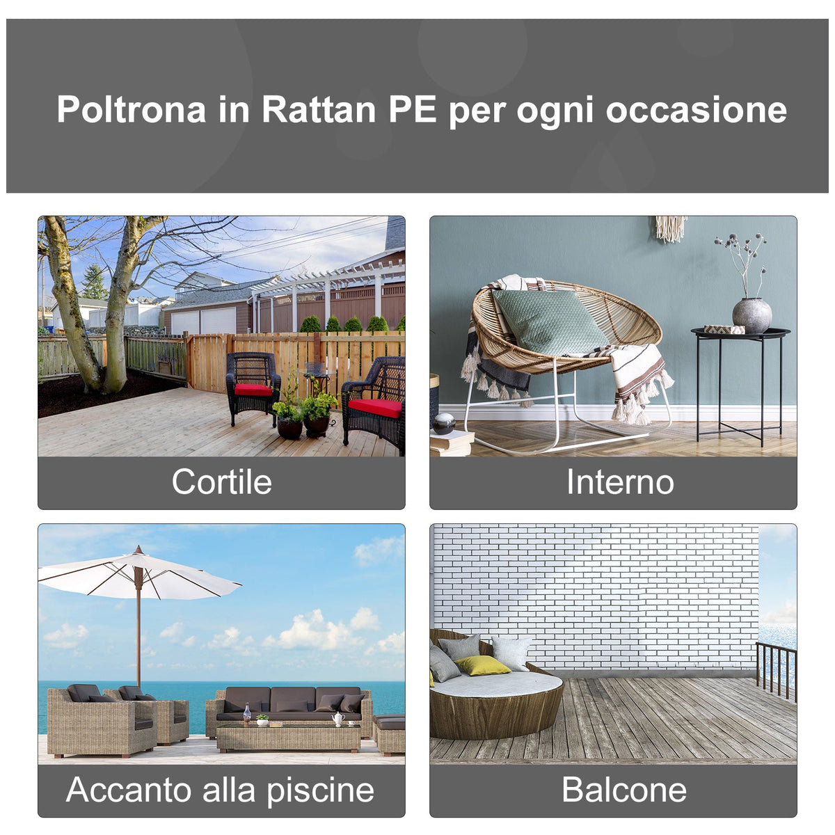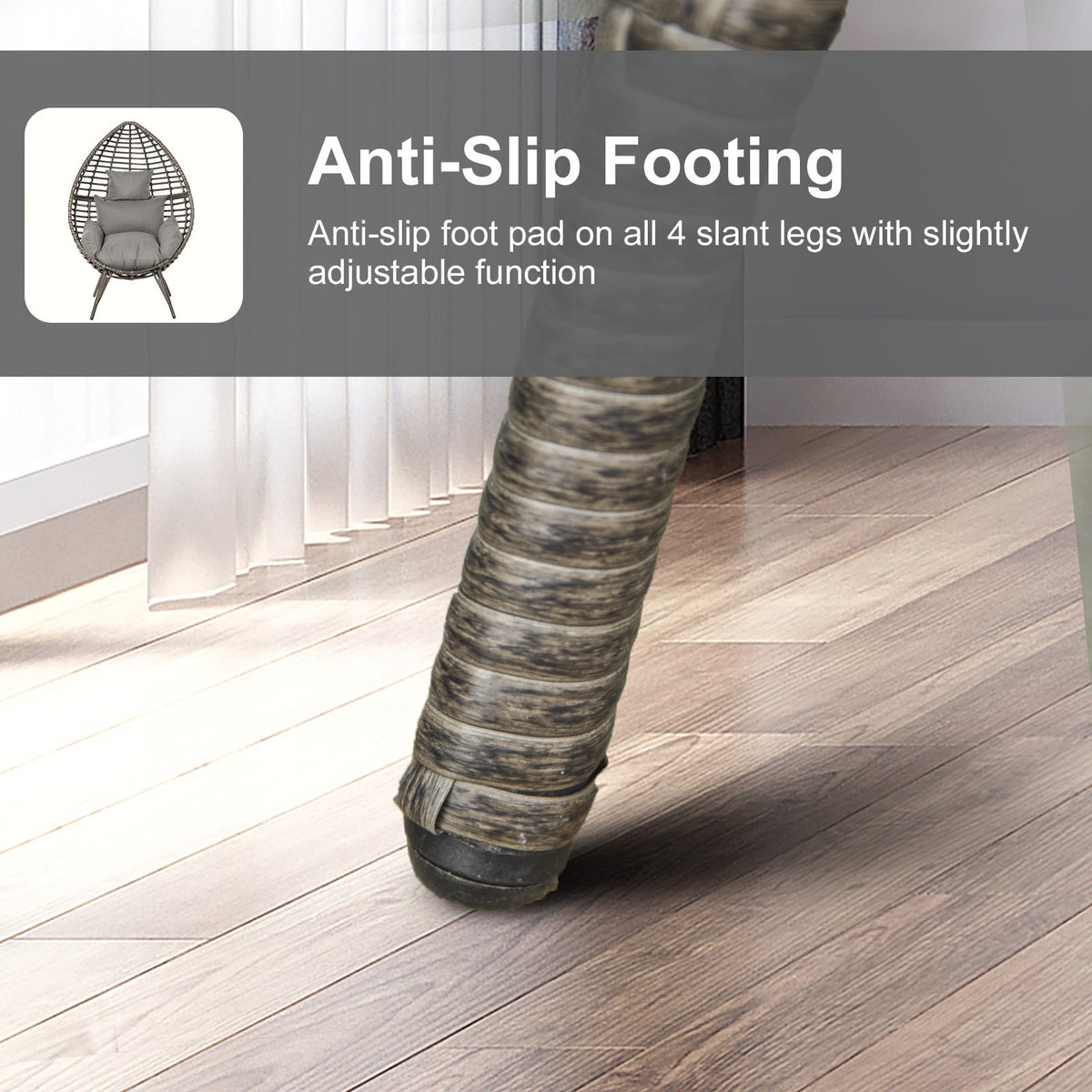 Outsunny Teardop PE Wicker Rattan Chair w/ Thick Cushions 4 Legs Outdoor Seat Egg Garden - Grey