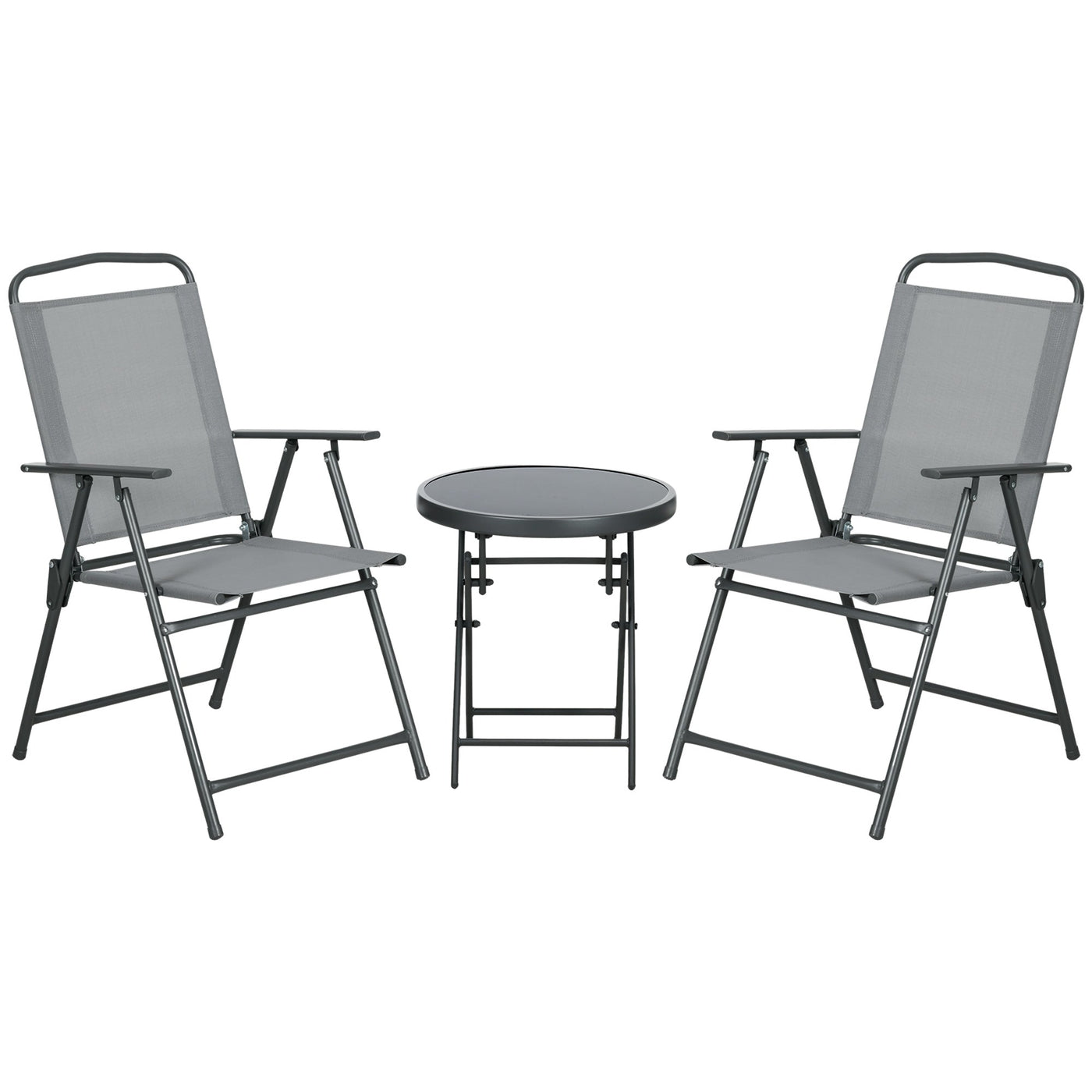 This Outsunny set comes with a round table and two matching chairs - enjoy time outdoors with company, practically anywhere....