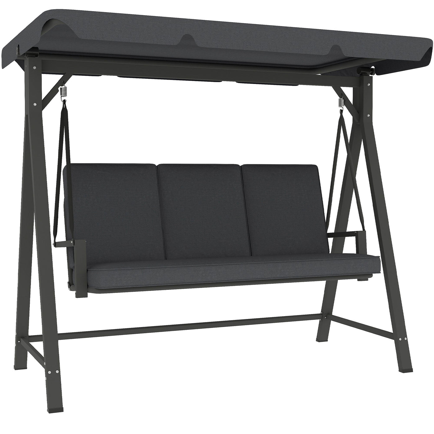 Transform your garden into a serene retreat with the Outsunny 3 seater swing seat. This swing bench features a 90-degree adjustable sun canopy with charming ruffles, offering UPF30+ protection. Enjoy comfort on the padded seat and backrest. Plus, the cushions are removable and washable, making upkeep a breeze. Optimal for relaxing, this garden swing chair adds a touch of elegance to any outdoor space.