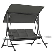 A classic patio swing with a sleek update - two glass tables: this Outsunny swing bench is before than ever before. With a steel frame for a strong core, plus the 'A' legs to stand balanced. Three-seater size offers plenty of room to relax, with a padded seat and back cushion for comfort. The round glass-top tables on each side give you somewhere safe to keep drinks, magazines and more within easy reach. Comes with an adjustable canopy to shelter from the elements.