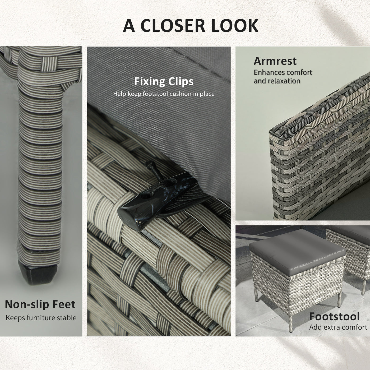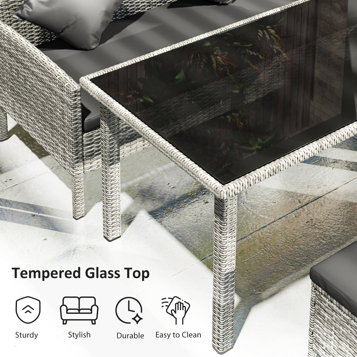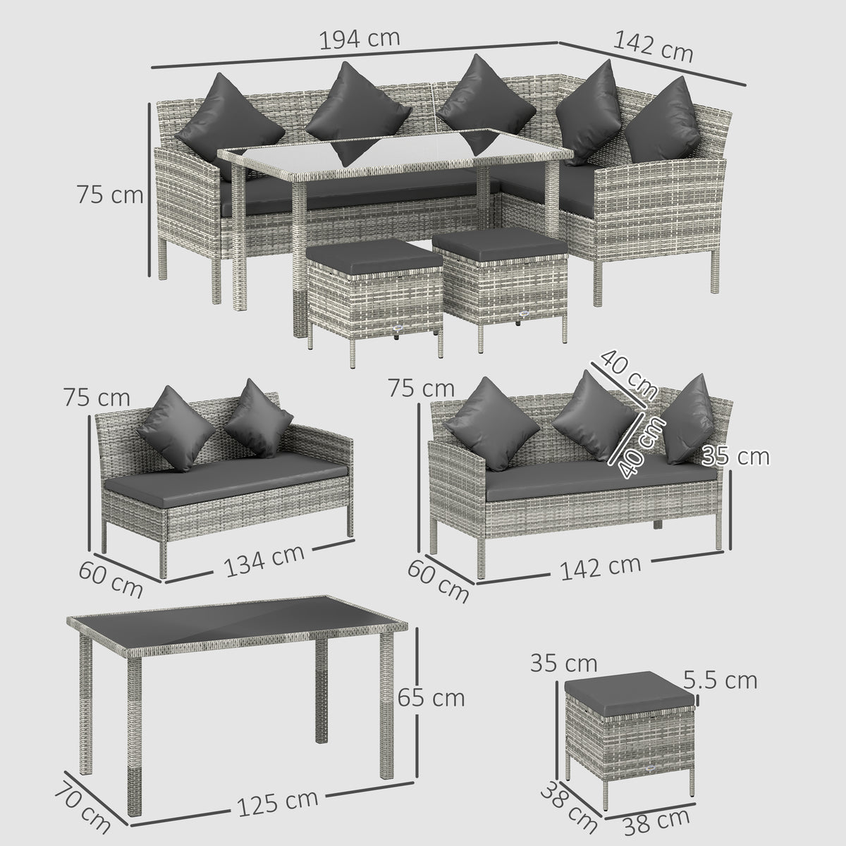 Outsunny tsunny 6-Seater Rattan Dining Set Sofa Table Footstool Outdoor w/ Cushion Garden Furniture, Dark Grey - Dark Grey