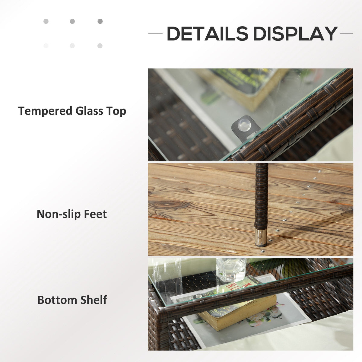 Outsunny Two-Seat Rattan Chair, with Middle Table - Brown - Brown, Cream White