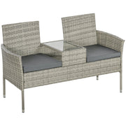 Outsunny Two-Seat Rattan Chair, with Middle Table - Light Grey - Mixed Grey, Grey