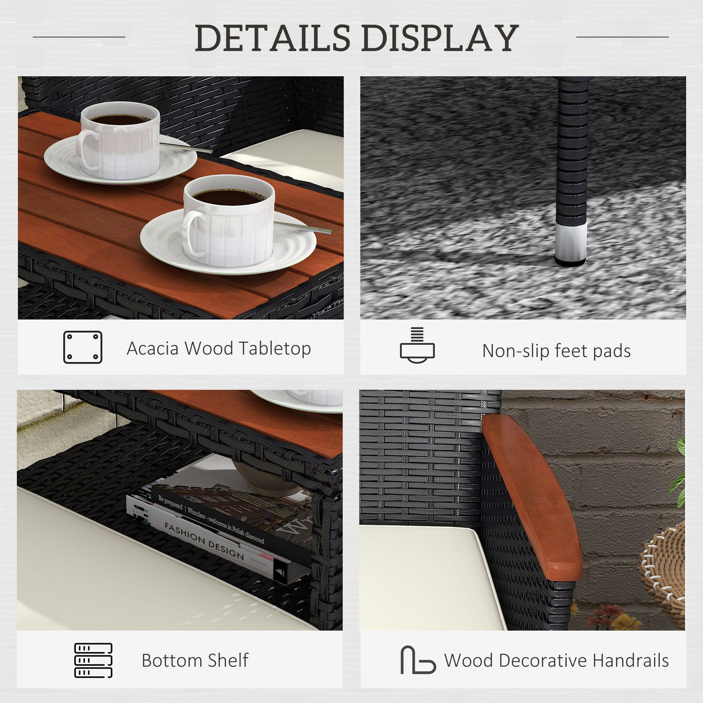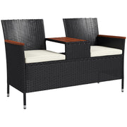 Outsunny Two-Seat Rattan Loveseat, with Wood-Top Middle Table - Black - Black