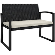 Sit down outdoors in style and comfort, with this Outsunny two seater garden bench. The powder coated steel frame for a strong piece, fitted with a rattan back and seat for garden style. Fitted with a padded seat cushion so you'll sit comfortably, rattan bench is complete with a removable and washable cover for hygiene.