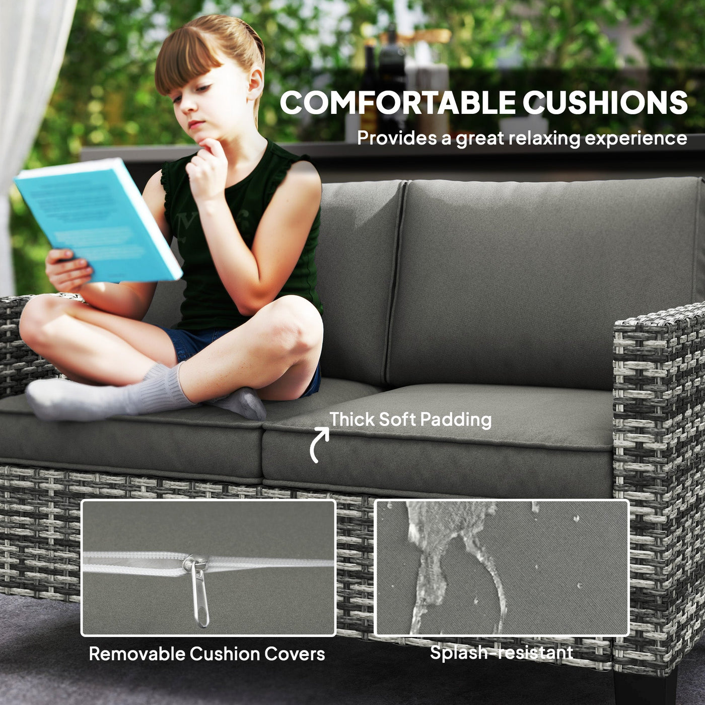 Outsunny Two-Seater Rattan Outdoor Sofa - Light Grey