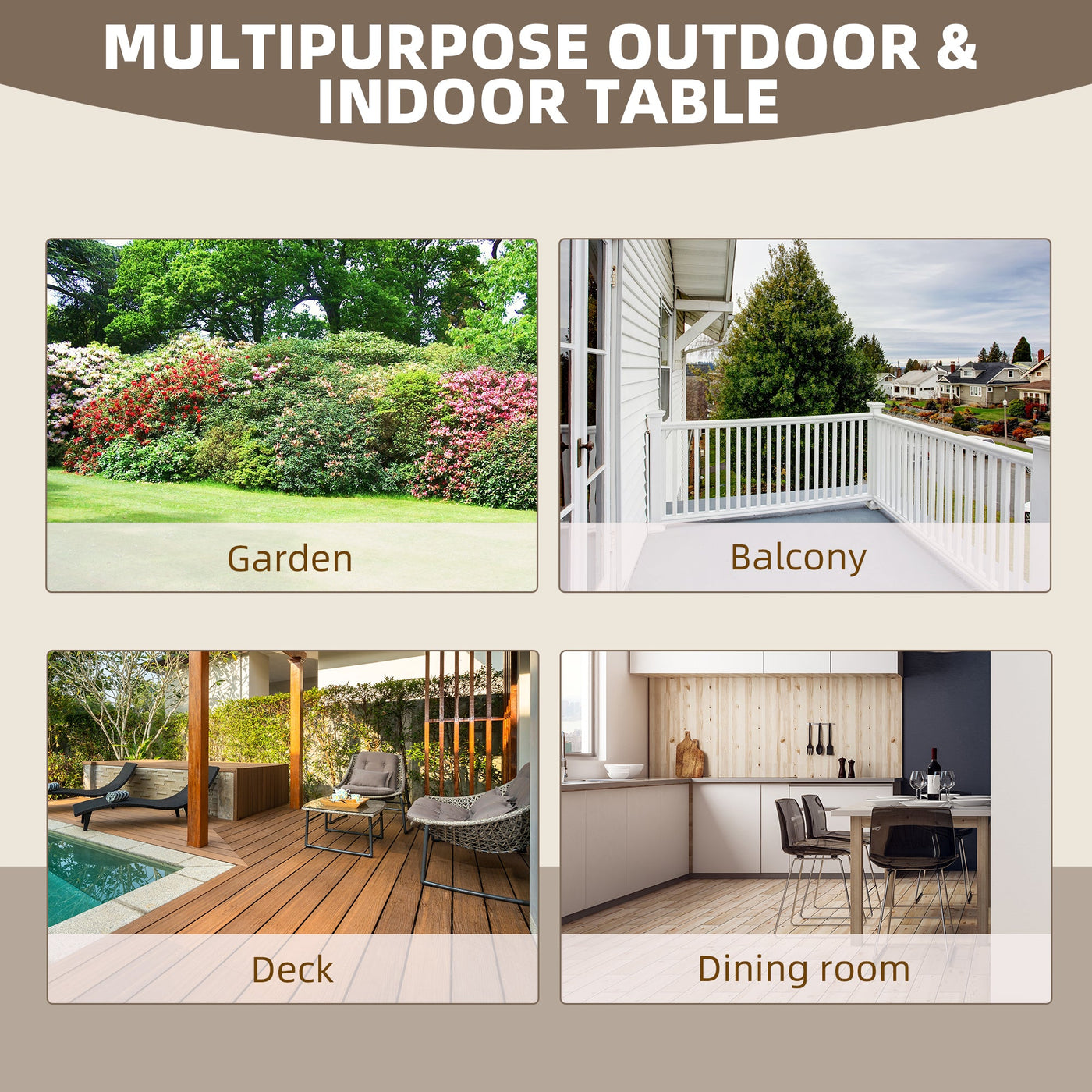 Outsunny Wooden Garden Dining Table, Wagon Wheel Outdoor Coffee Table with 3 cm Wood Top for Patio, Balcony, Terrace, 110 x 60 x 65 cm, Carbonised Finish - Carbonised finish