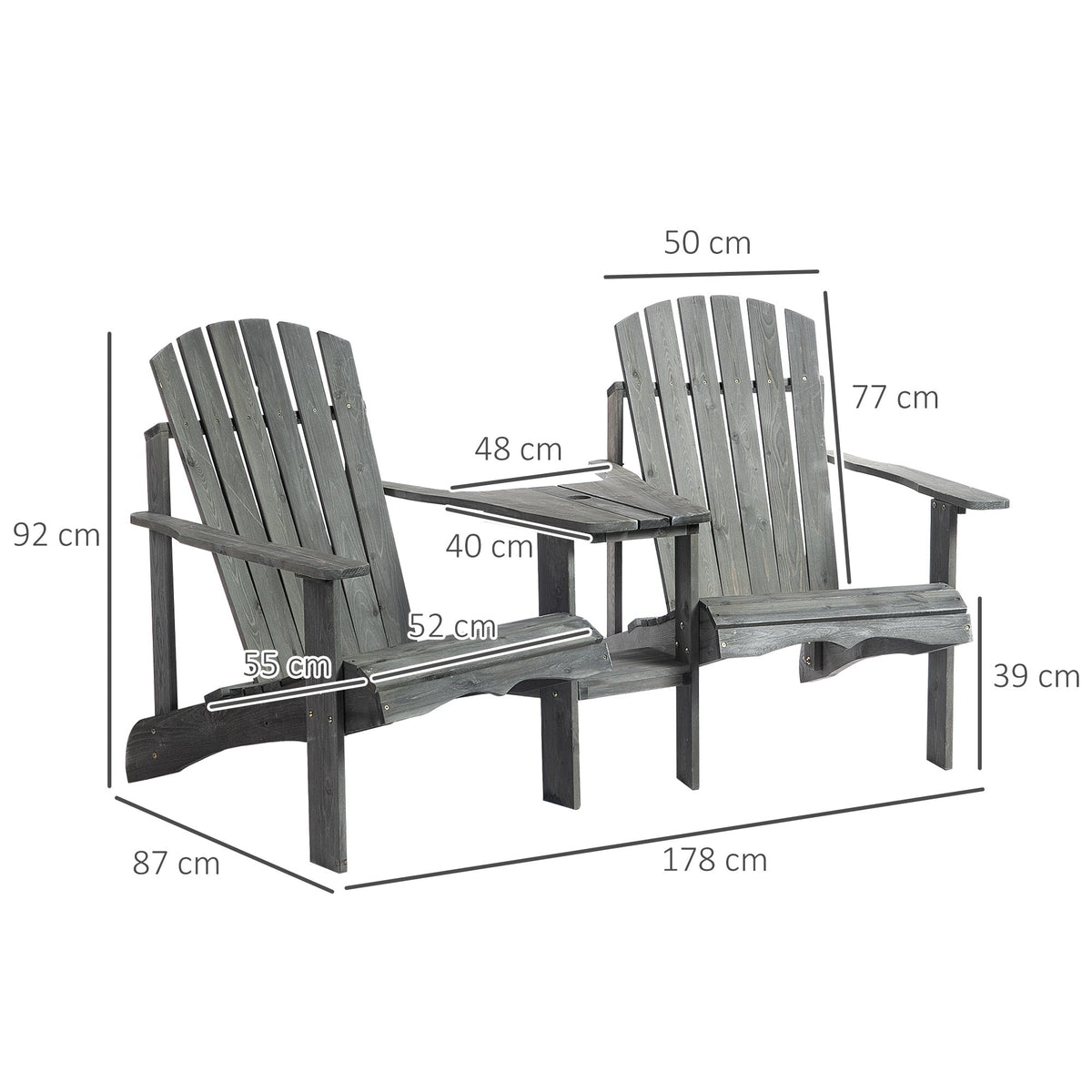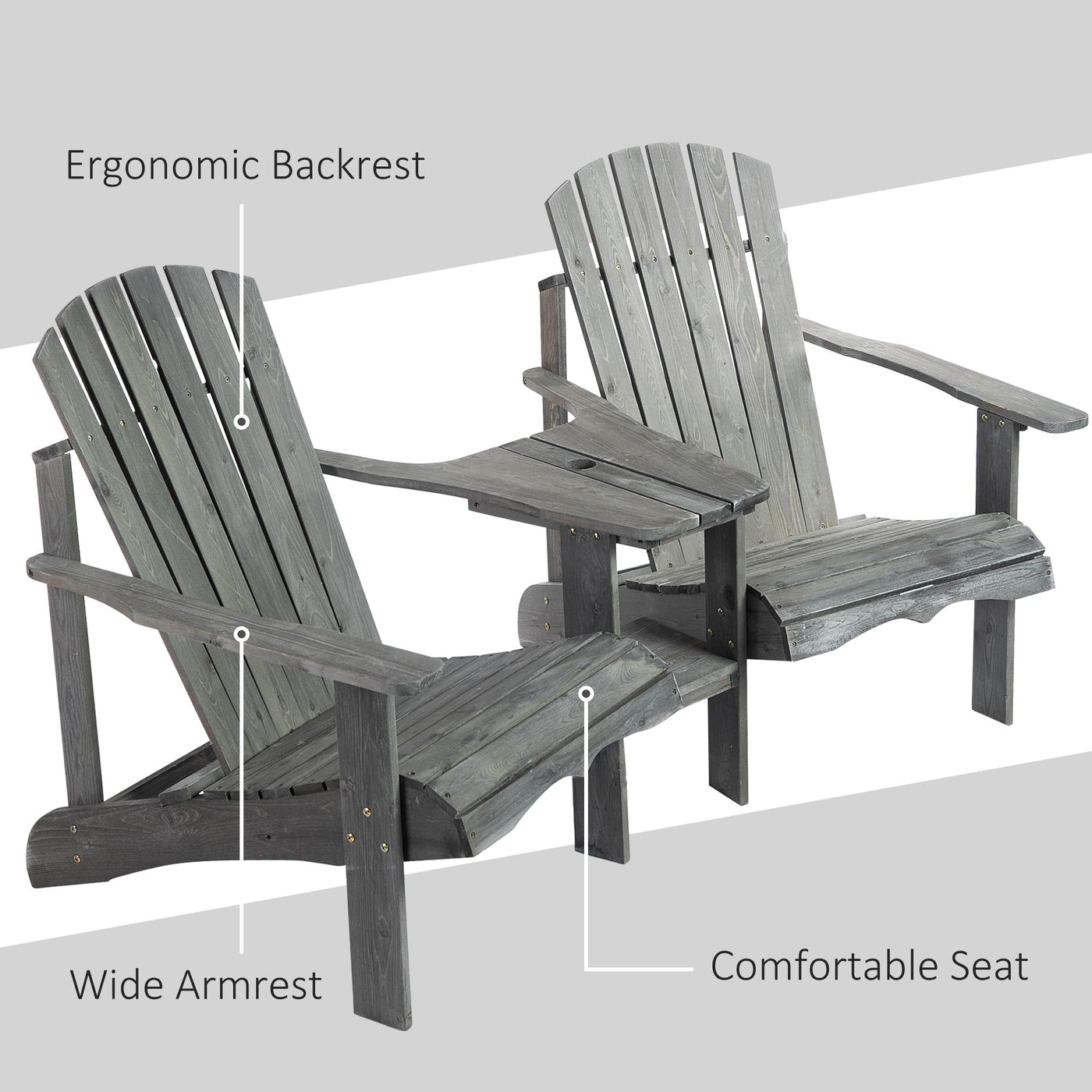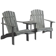 Outsunny Wooden Outdoor Double Adirondack Chairs Loveseat w/ Centre Table and Umbrella Hole, Garden Patio Furniture for Lounging and Relaxing, Grey - Grey