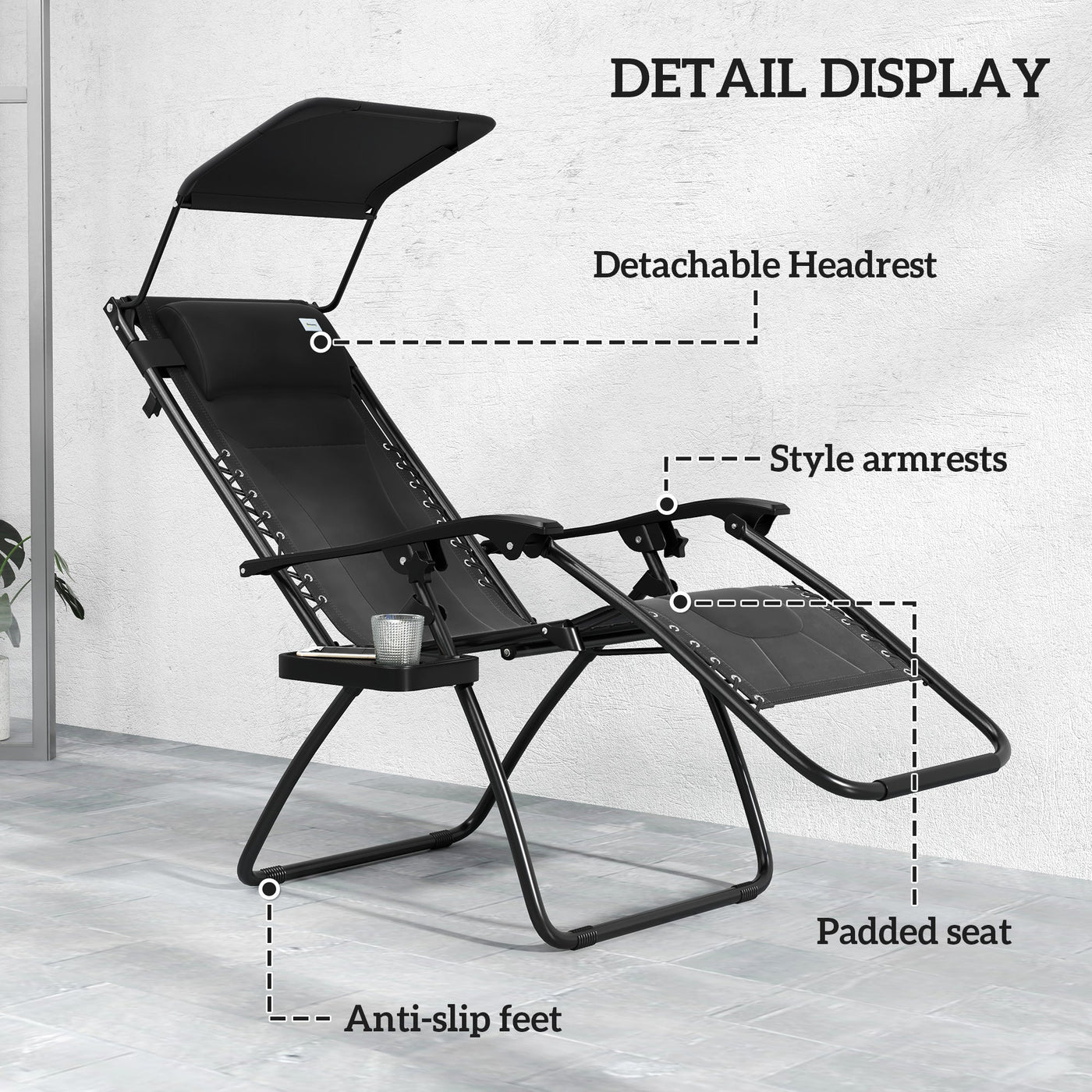 Outsunny Zero Gravity Lounger Chair, Folding Reclining Patio Chair with Shade Cover, Padded Seat, Cup Holder, Soft Cushion and Headrest for Poolside, Camping, Black - Black