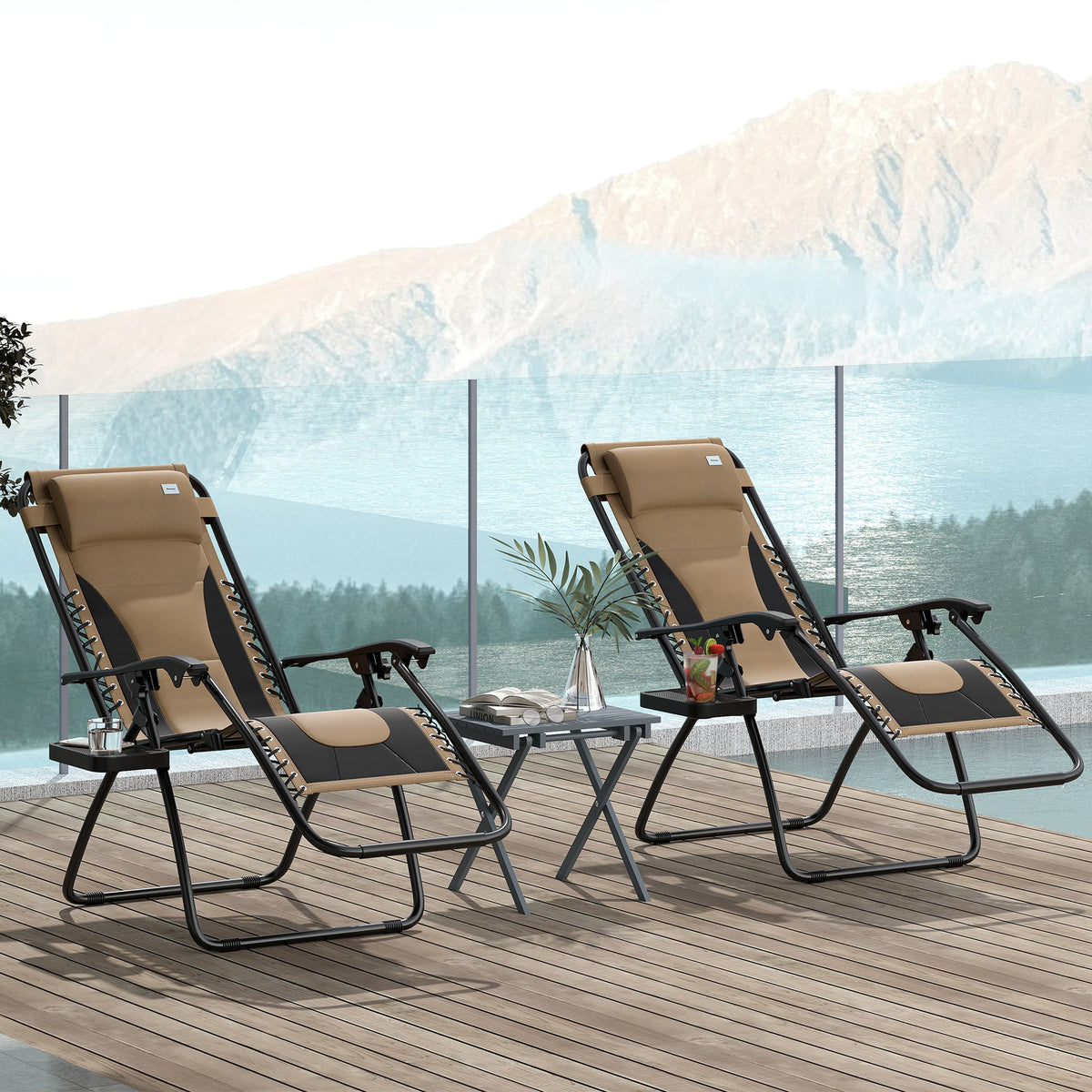Outsunny Zero Gravity Lounger Chair Set of 2, Folding Reclining Patio Chair with Padded Seat, Cup Holder, Soft Cushion and Headrest for Poolside, Camping, Coffee - Brown