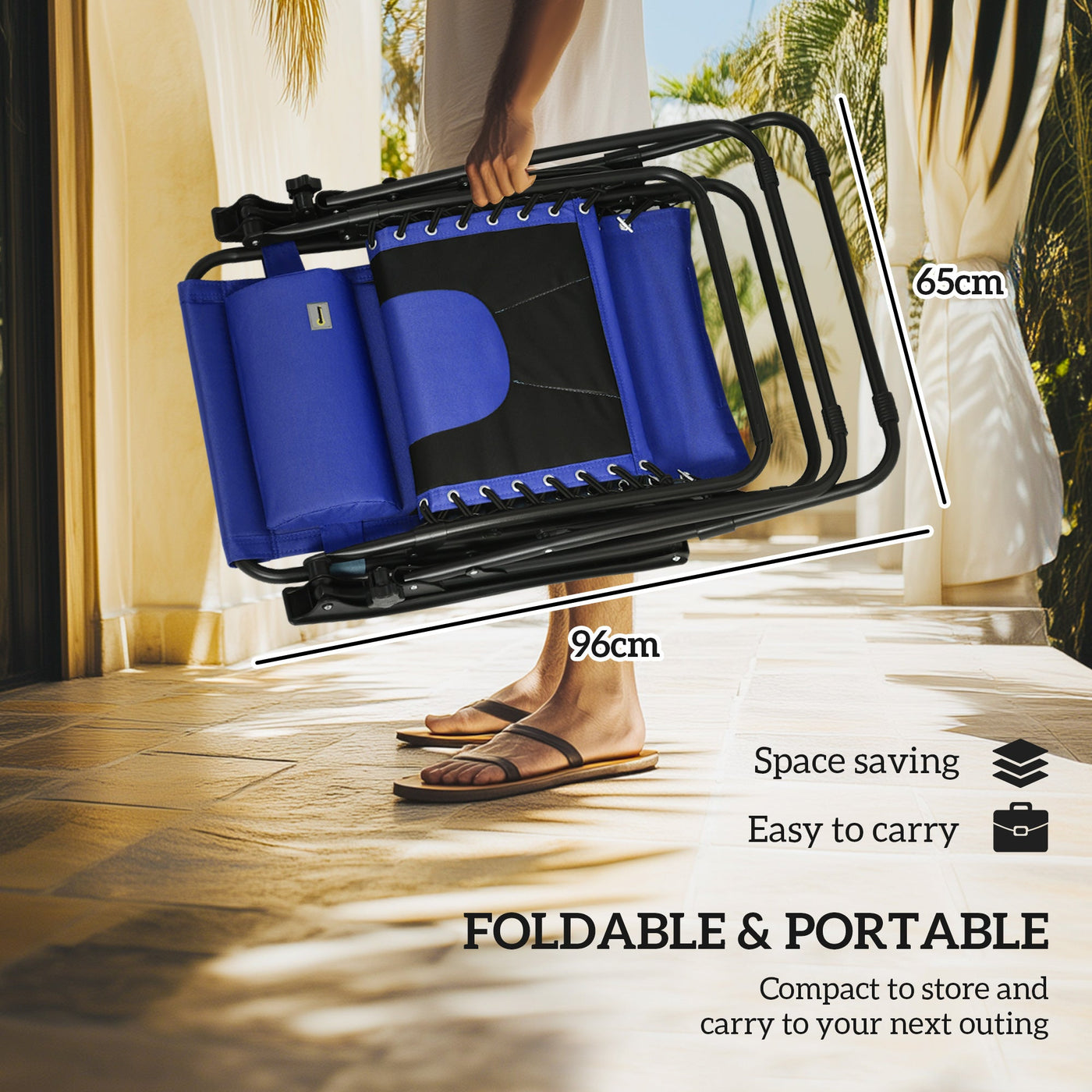 Outsunny Zero Gravity Lounger Chair Set of 2, Folding Reclining Patio Chair with Shade Cover, Cup Holder, Soft Cushion and Headrest for Poolside, Camping, Blue - Blue