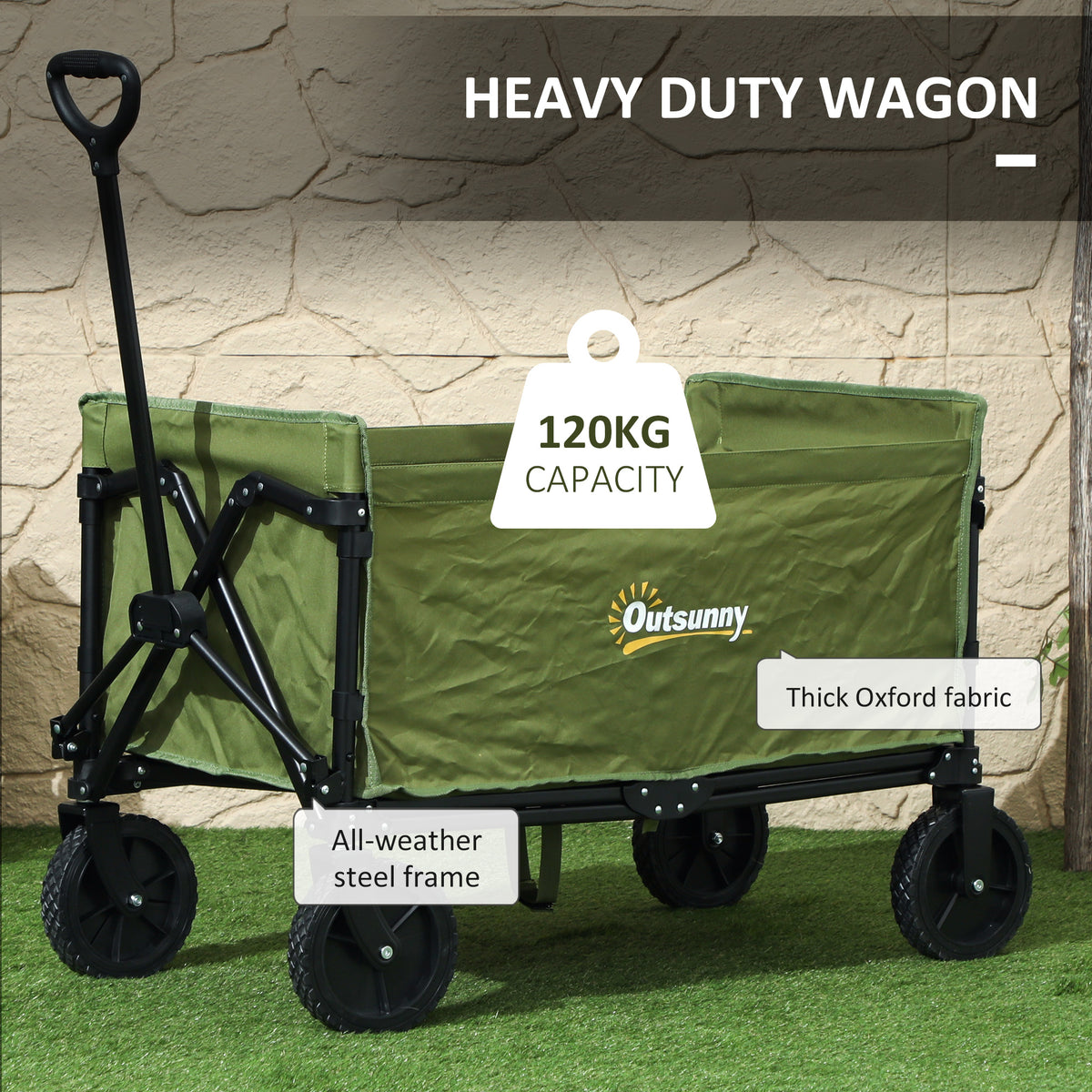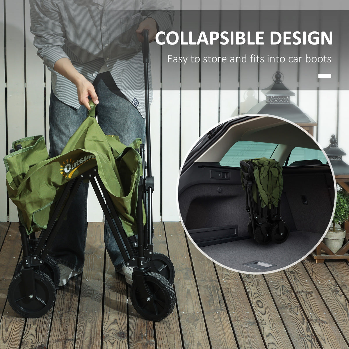Outsunny 120L Festival Trolley on Wheels, Folding & Compact Camping Trolley Cart with Adjustable Handle for Garden, Beach, Fishing, Green - Green