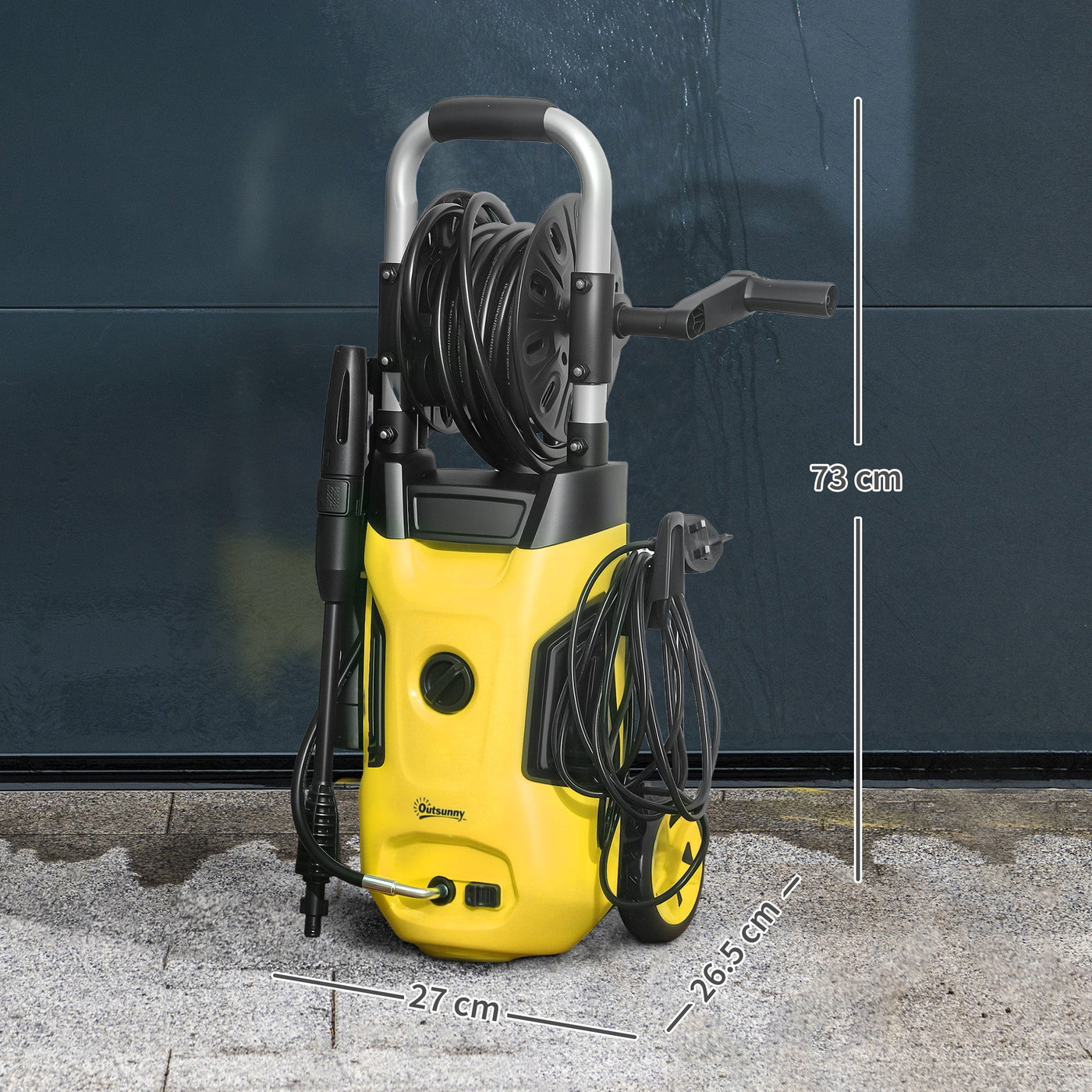 Outsunny 1800W High Pressure Washer, 150 Bar Pressure, 420 L/h Flow, Portable Power Washer Jet Wash Cleaner with Adjustable Nozzle, 6M Hose, Hose Reel, Steel Handle for Home Patio Car Driveway, Yellow - Yellow