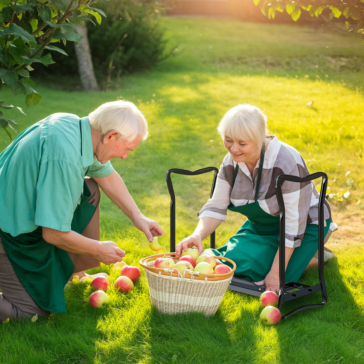Take the strain off your knees as you keep your outdoors looking its great, thanks to this Outsunny garden kneeler. The steel frame means a strong core - the design foldable so you can carry and store it easily. A thick foam pad is fitted to rest comfortably for as long as you work - it can be flipped to use as a higher-level seat to take a break whenever needed. Complete with a removable tool bag for easy access to equipment without having to stand up.