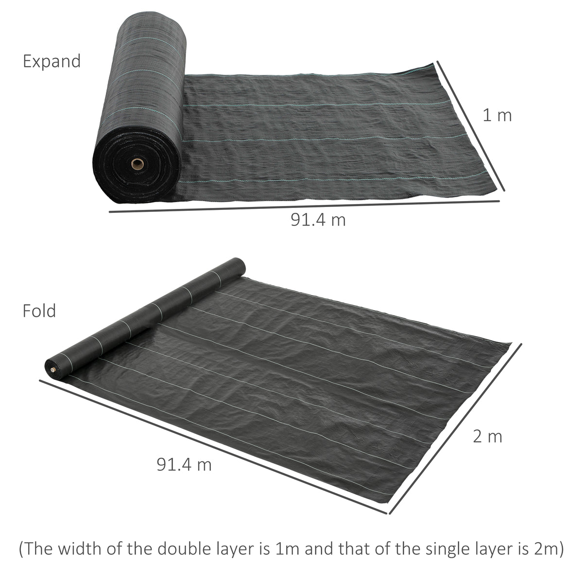 Outsunny 2m x 90m Weed Control Membrane, Heavy Duty Weed Control Barrier Fabric, 90gsm Ground Cover for Patios, Garden, Flower beds, Landscaping - Black