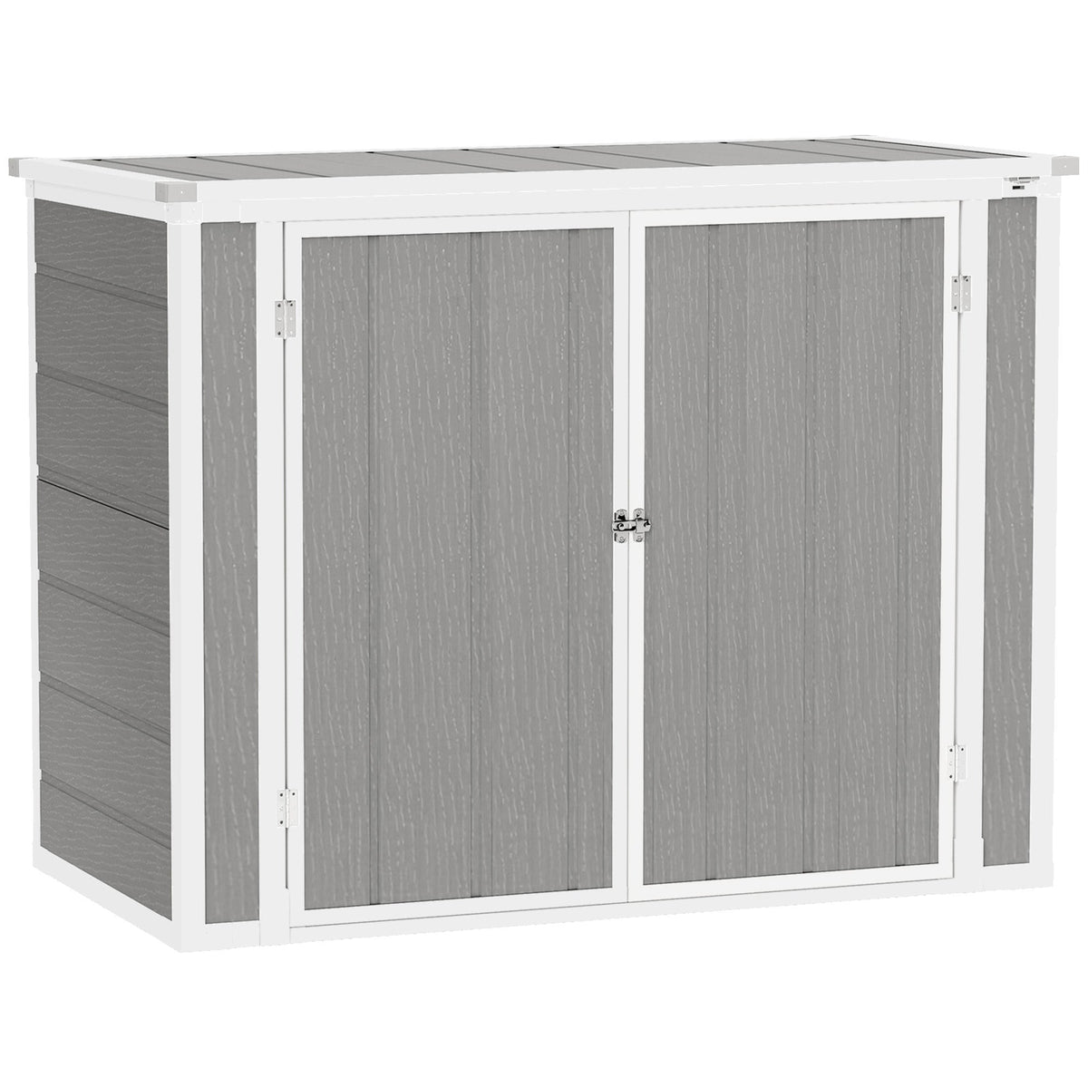 Outsunny 4.7 x 2.5FT Garden Shed, Double Bin Storage Shed with Lockable Doors, Outdoor Small Shed with Openable Lid for 2 Trash Cans, Garden Tools, Grey - Grey