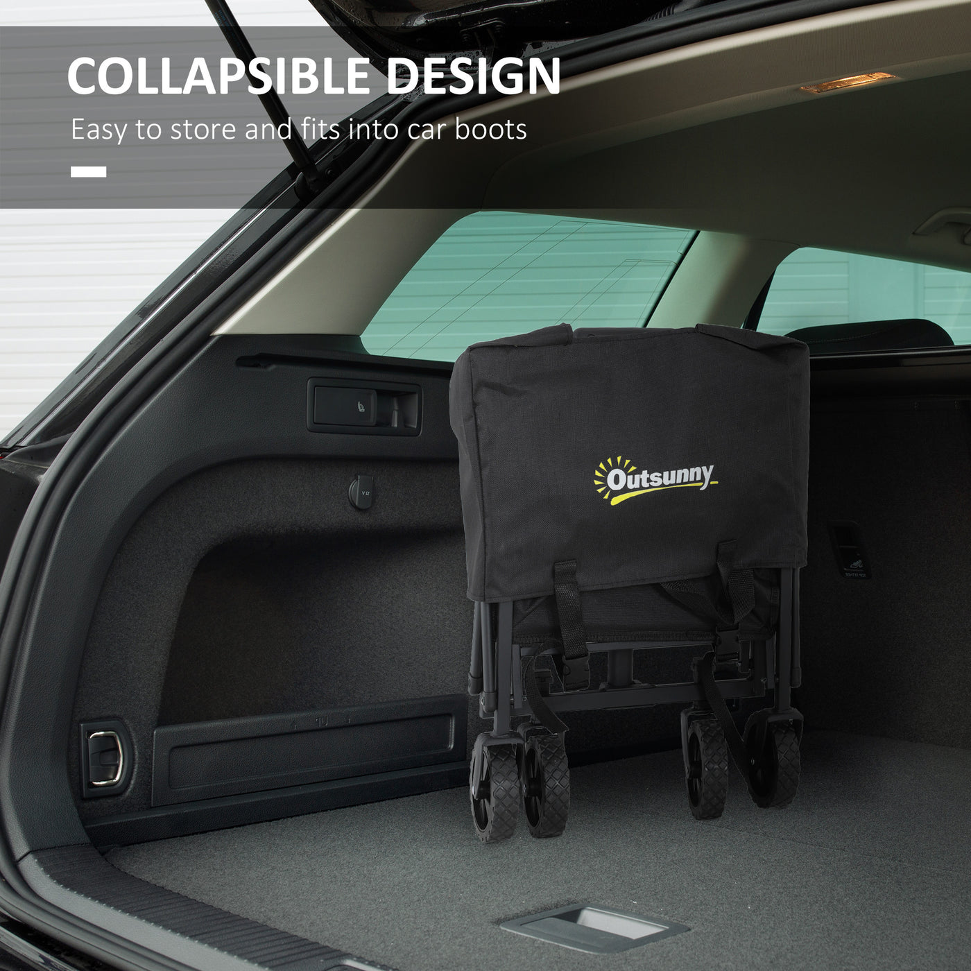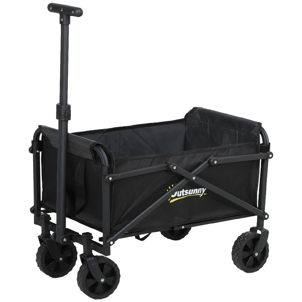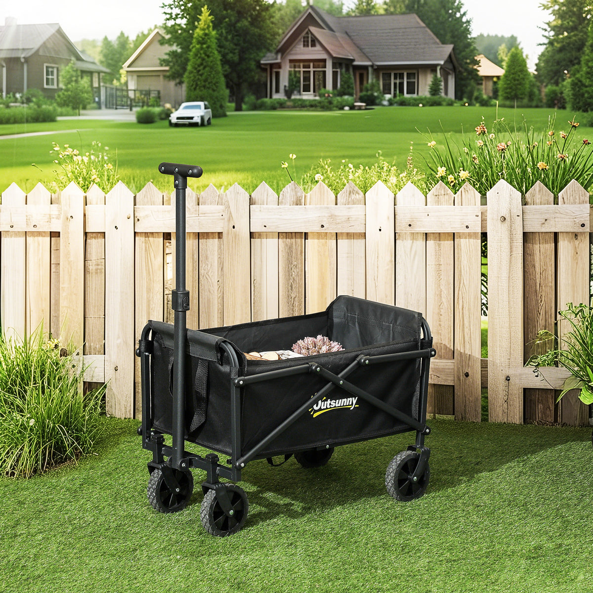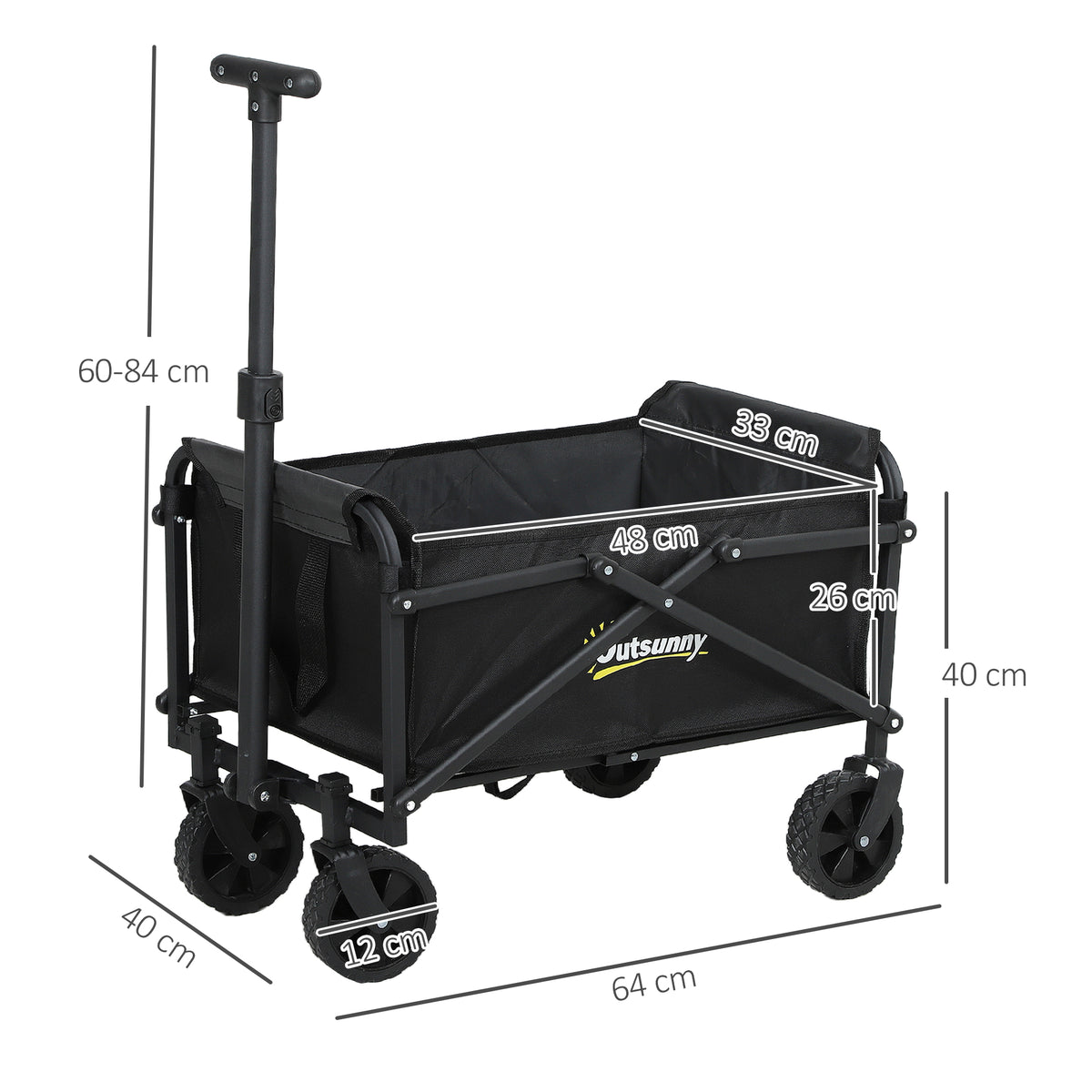 Outsunny 41L Festival Trolley on Wheels, Small Garden Folding Trolley Cart, 60kg Heavy Duty Collapsible Folding Wagon with Adjustable Handle and Carrying Bag for Beach, Camping, Festival, Black - Black