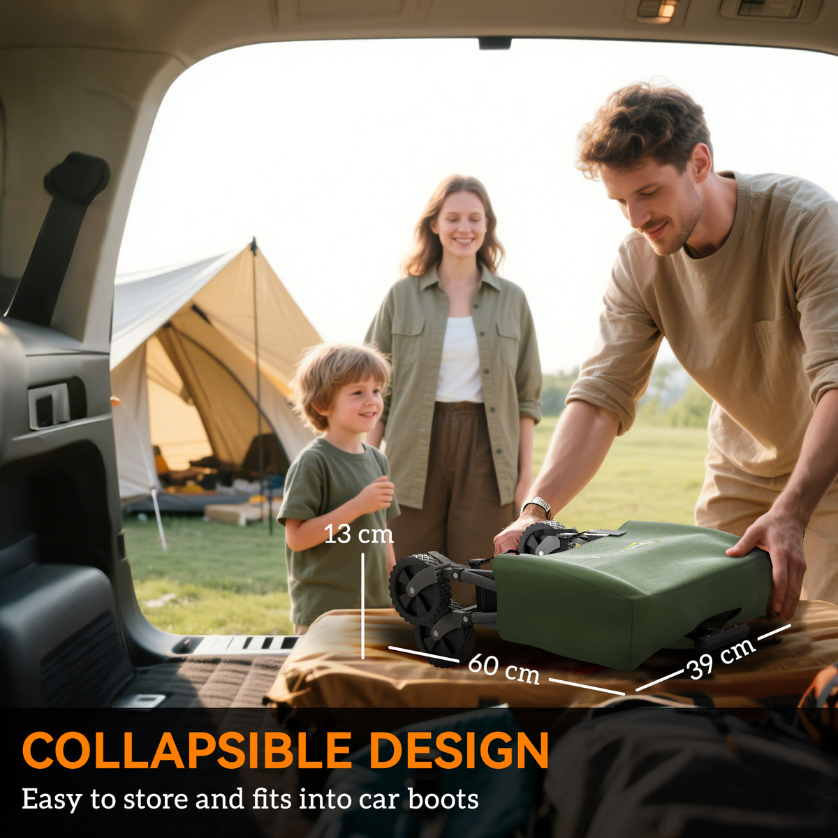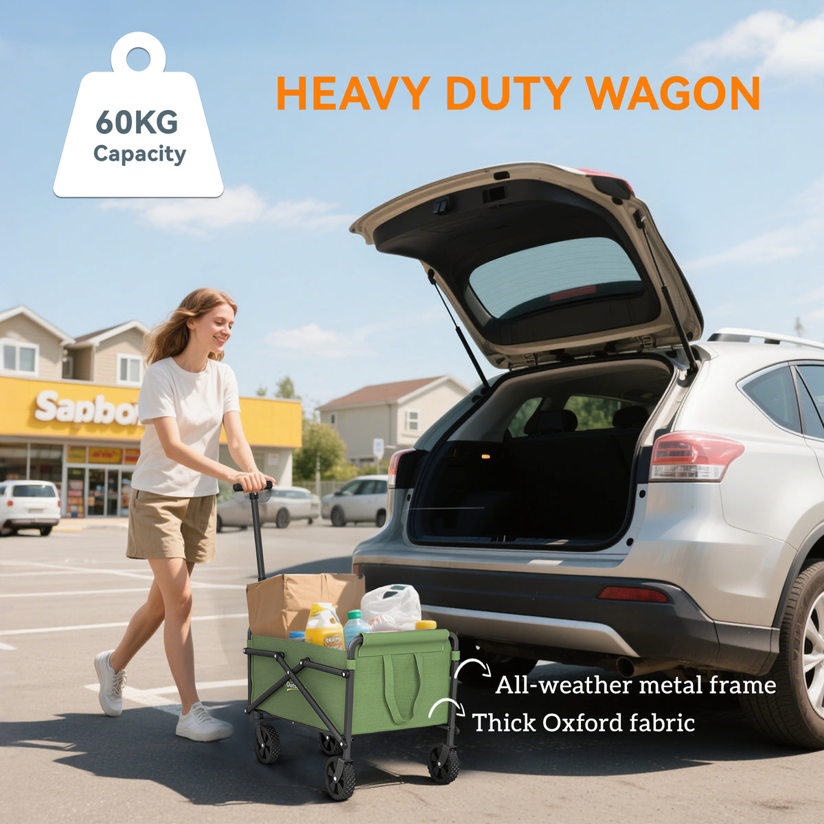Outsunny 41L Festival Trolley on Wheels, Small Garden Folding Trolley Cart, 60kg Heavy Duty Collapsible Folding Wagon with Adjustable Handle and Carrying Bag for Beach, Camping, Festival, Green - Green