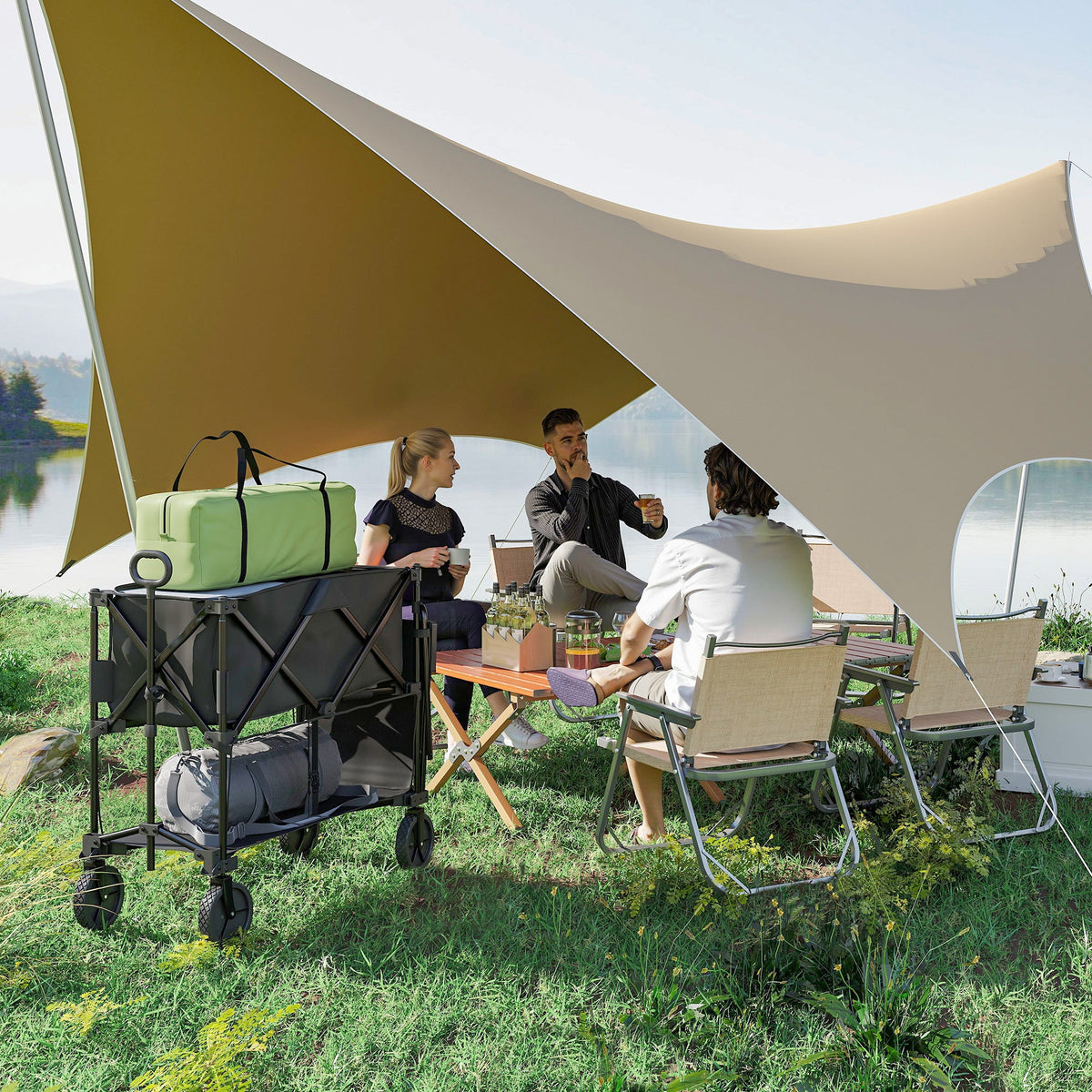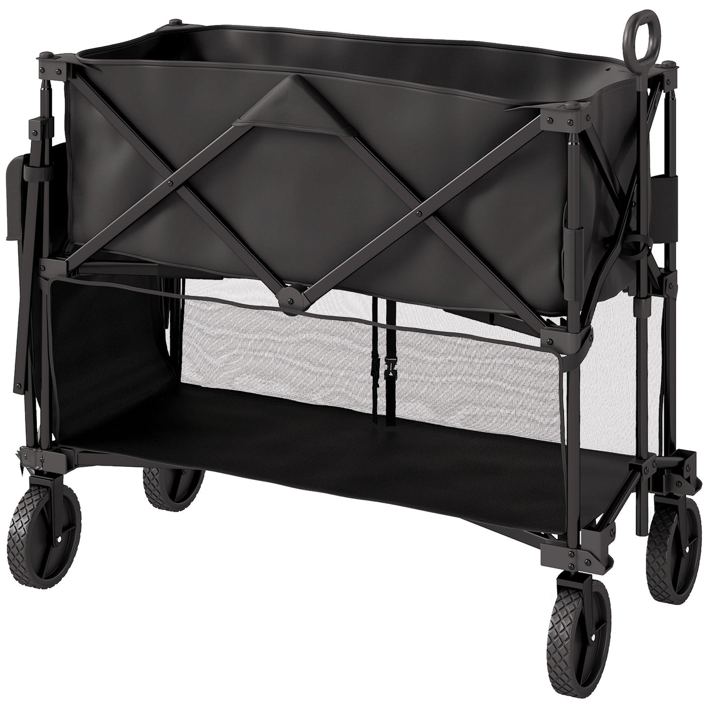 Outsunny Double Decker Folding Festival Trolley on Wheels, 200KG & 350L Capacity Collapsible Wagon Festival Trolley Cart with 134cm Extended for Camping Sports Shopping Garden and Beach, Black - Black