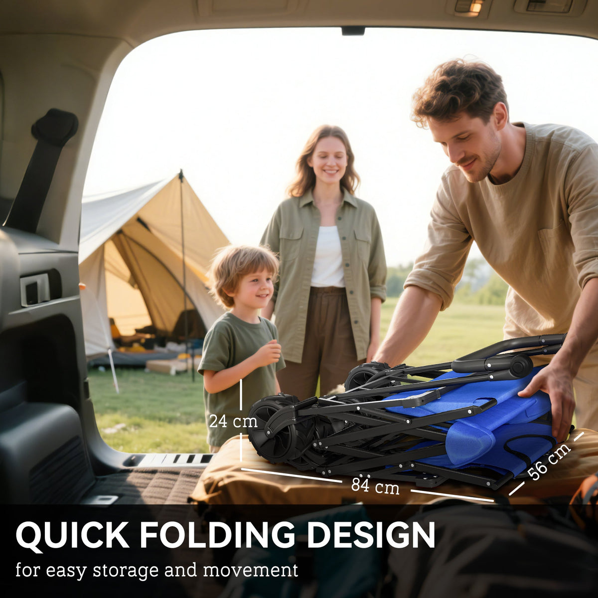 Outsunny Folding Trolley Cart Storage Wagon Beach Trailer 4 Wheels with Handle Overhead Canopy Cart Push Pull for Camping, Blue - Blue